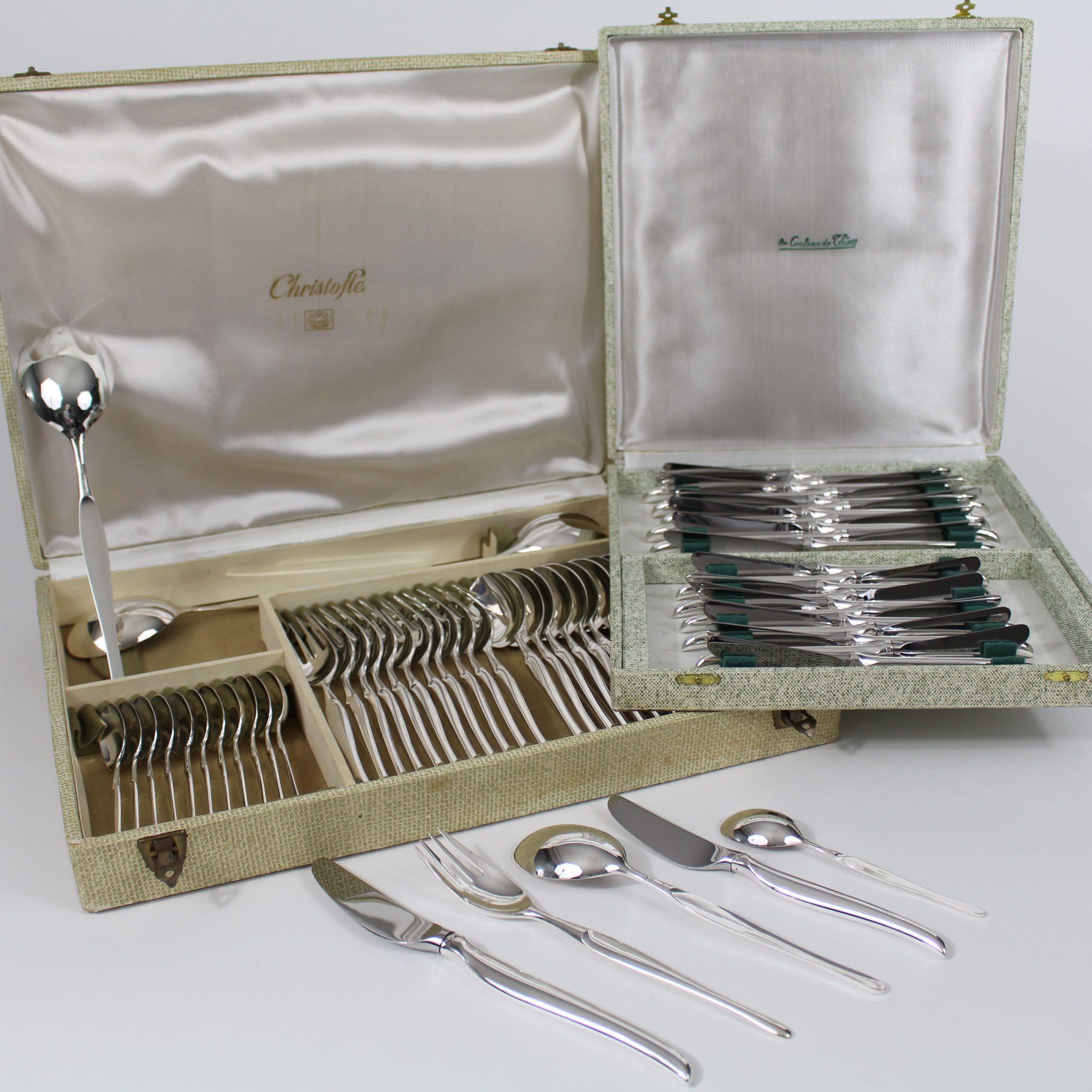 Belle et rare ménagère en métal argenté par Christofle vers 1960.