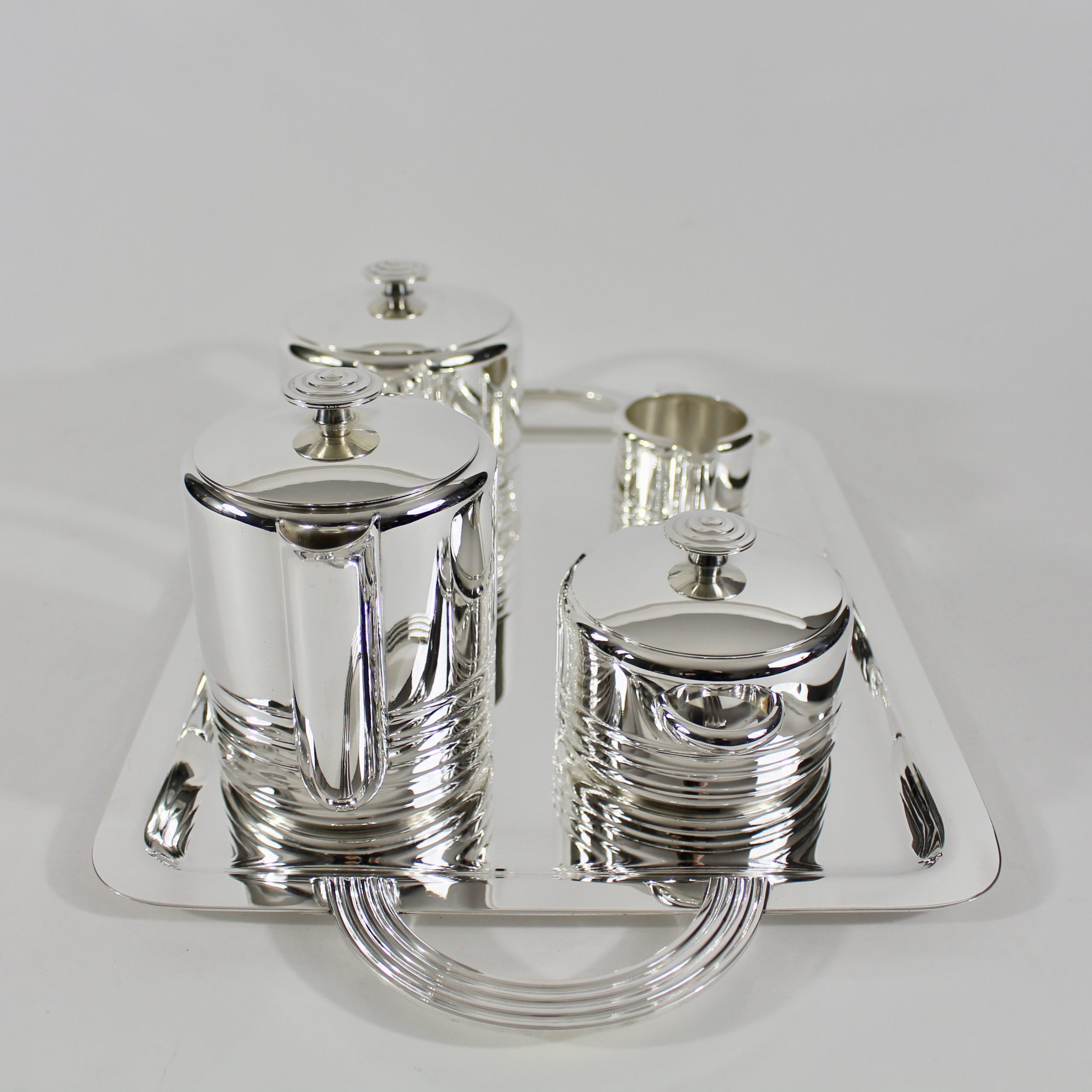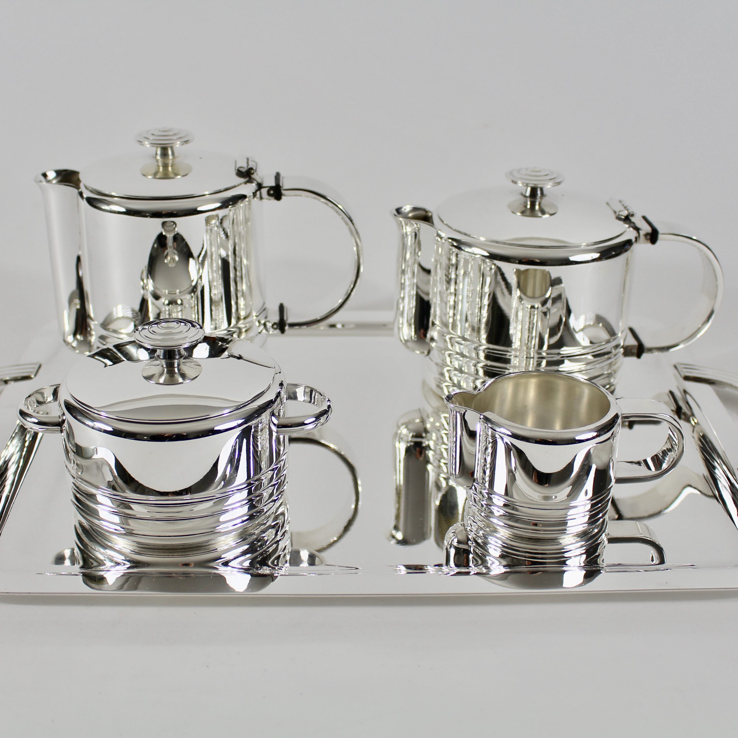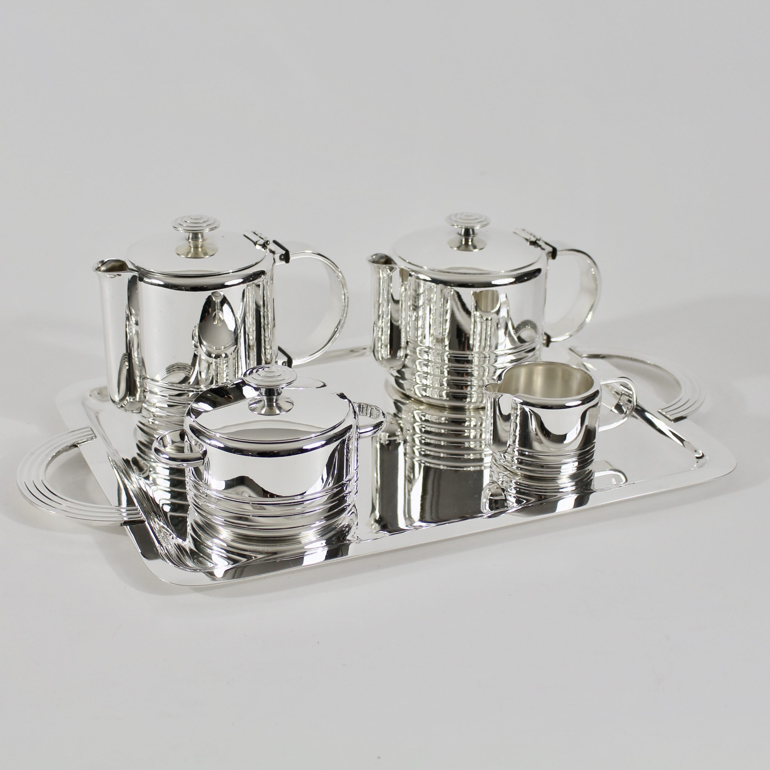 Rare et très beau service moderniste à thé-café en métal argenté par Christofle vers 1935.