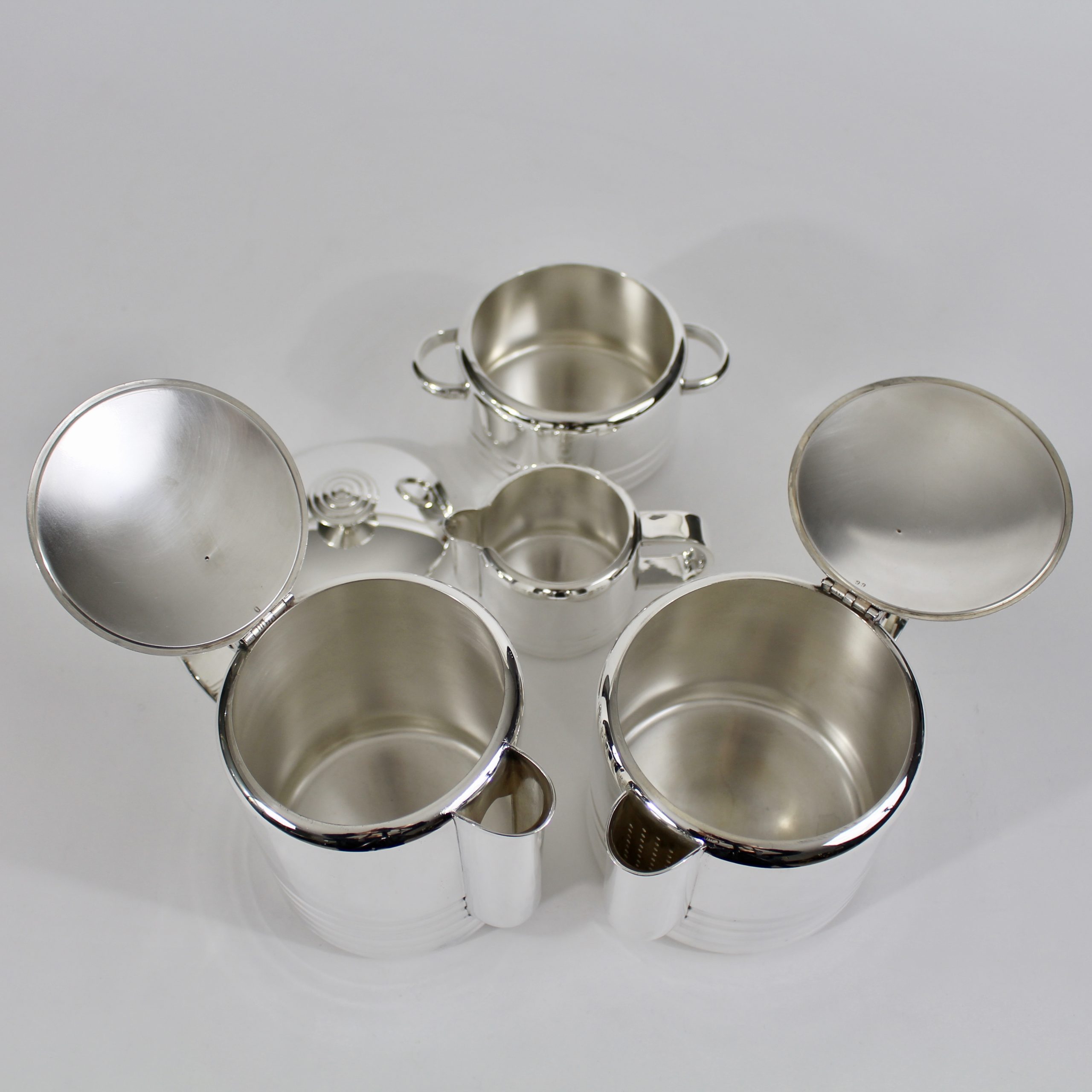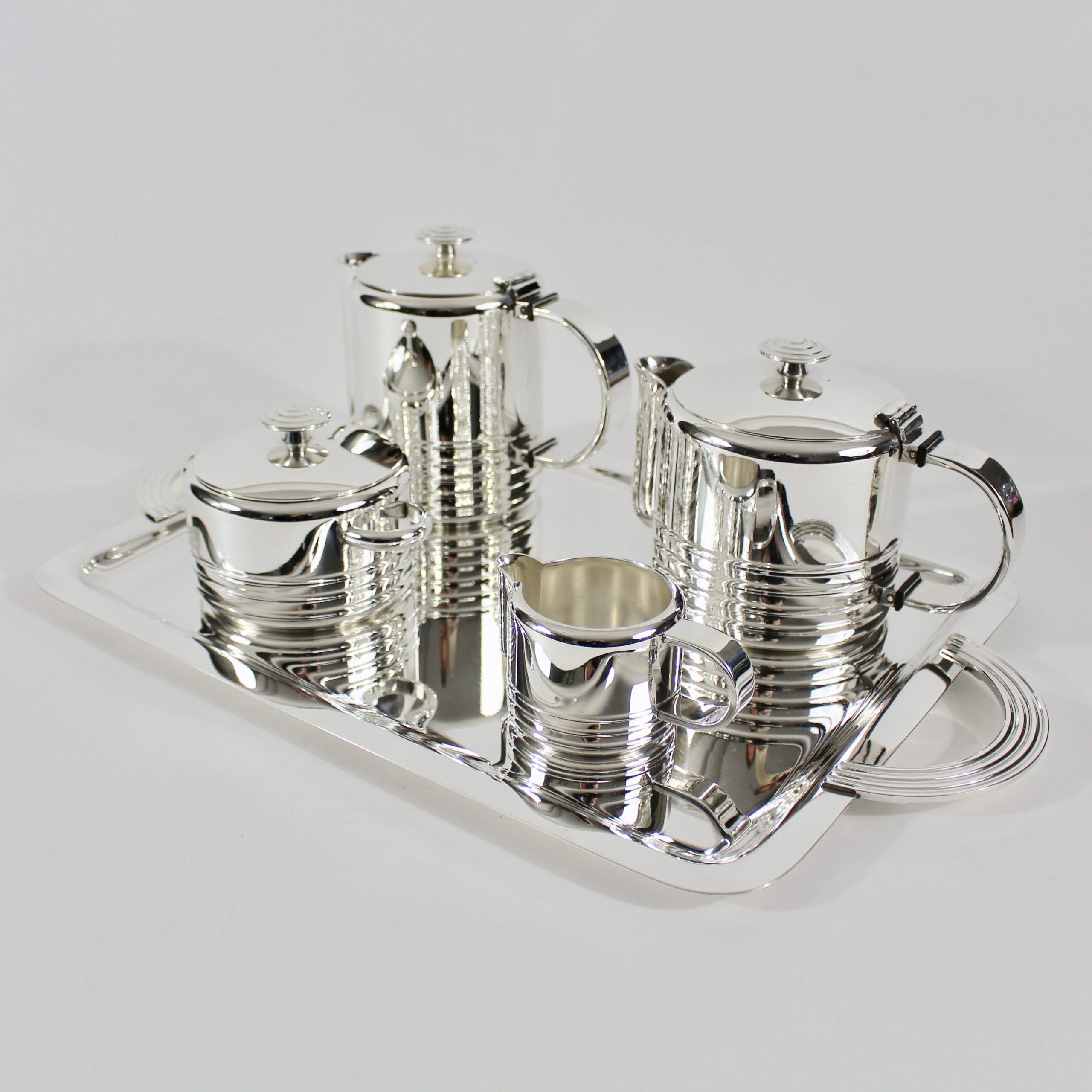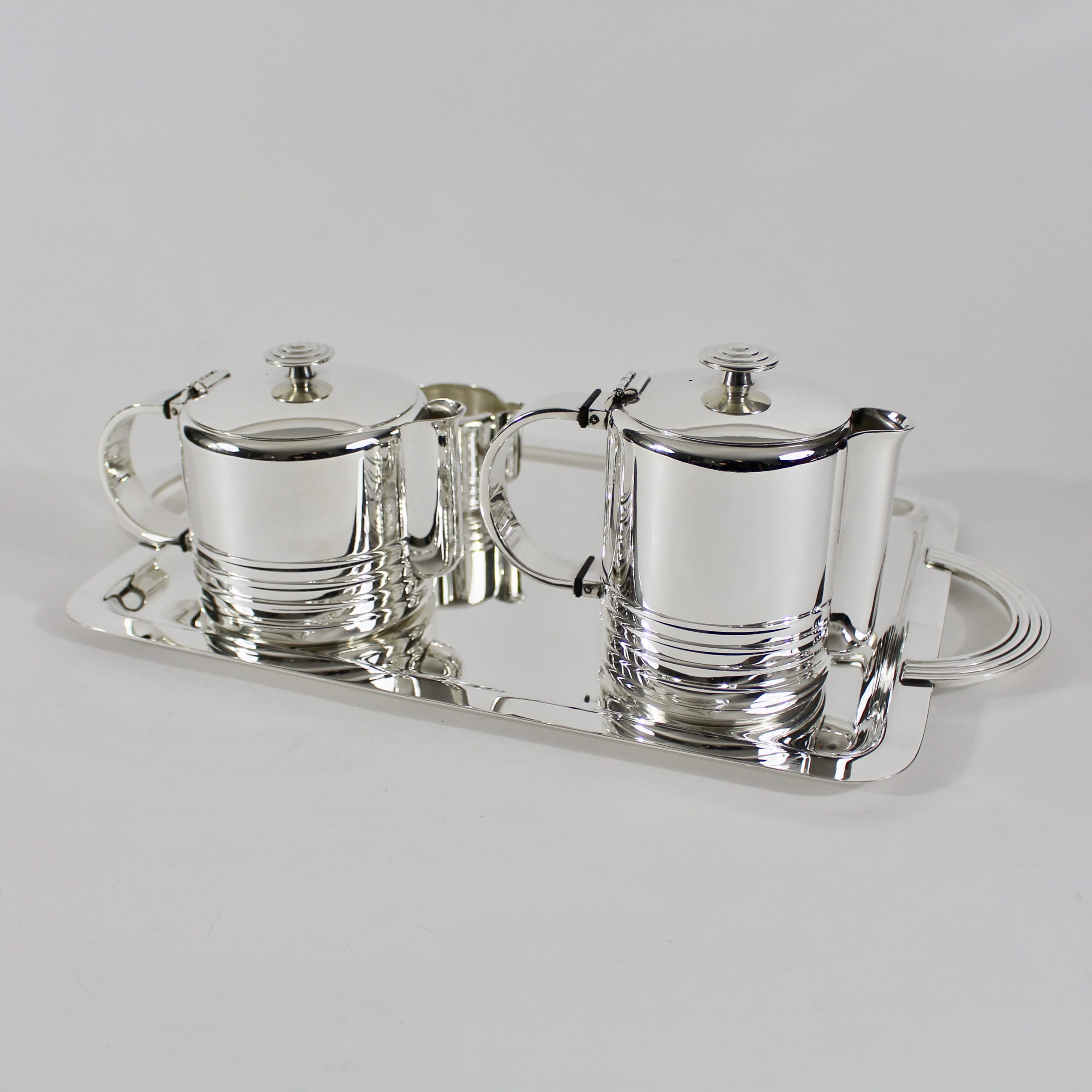 Rare et très beau service moderniste à thé-café en métal argenté par Christofle vers 1935.