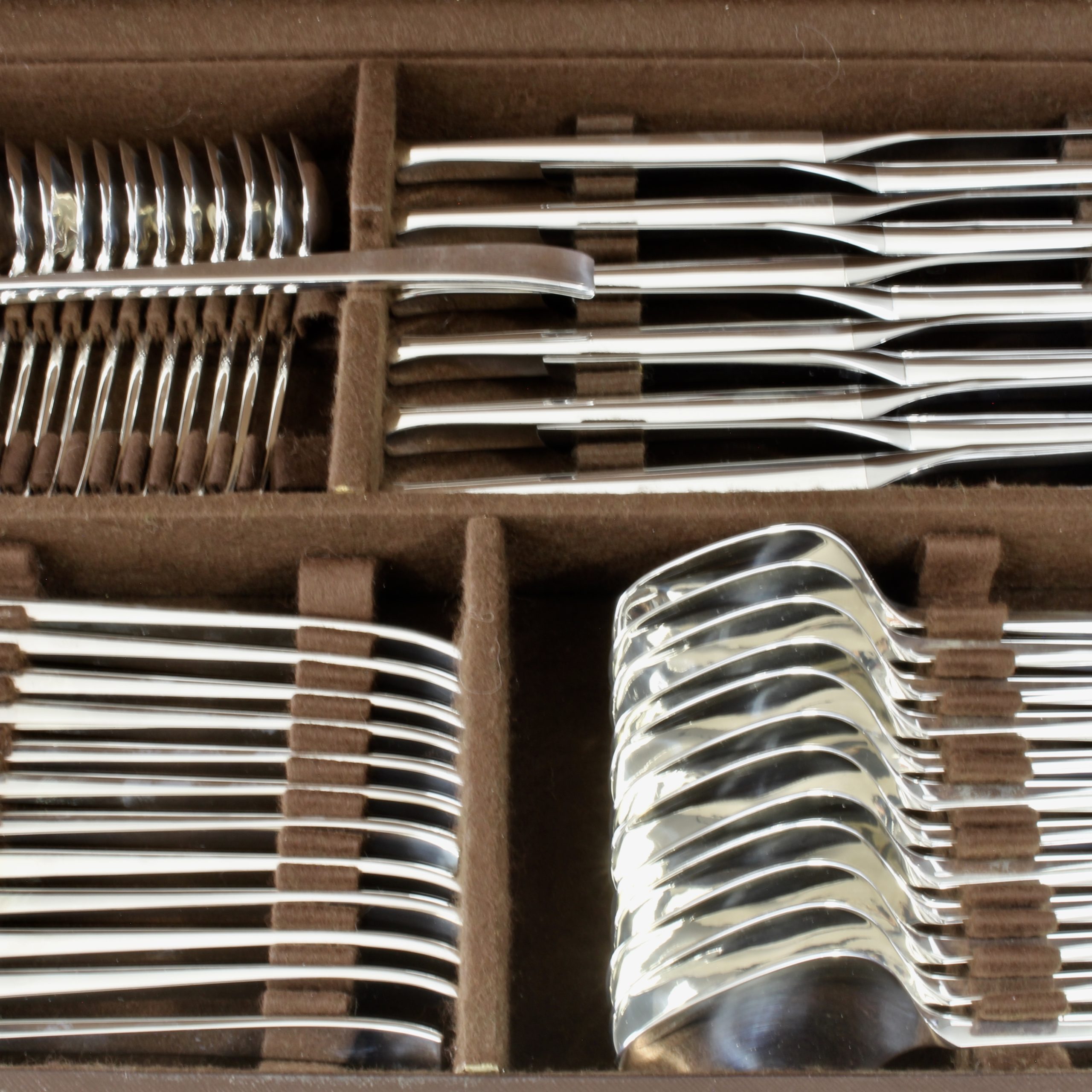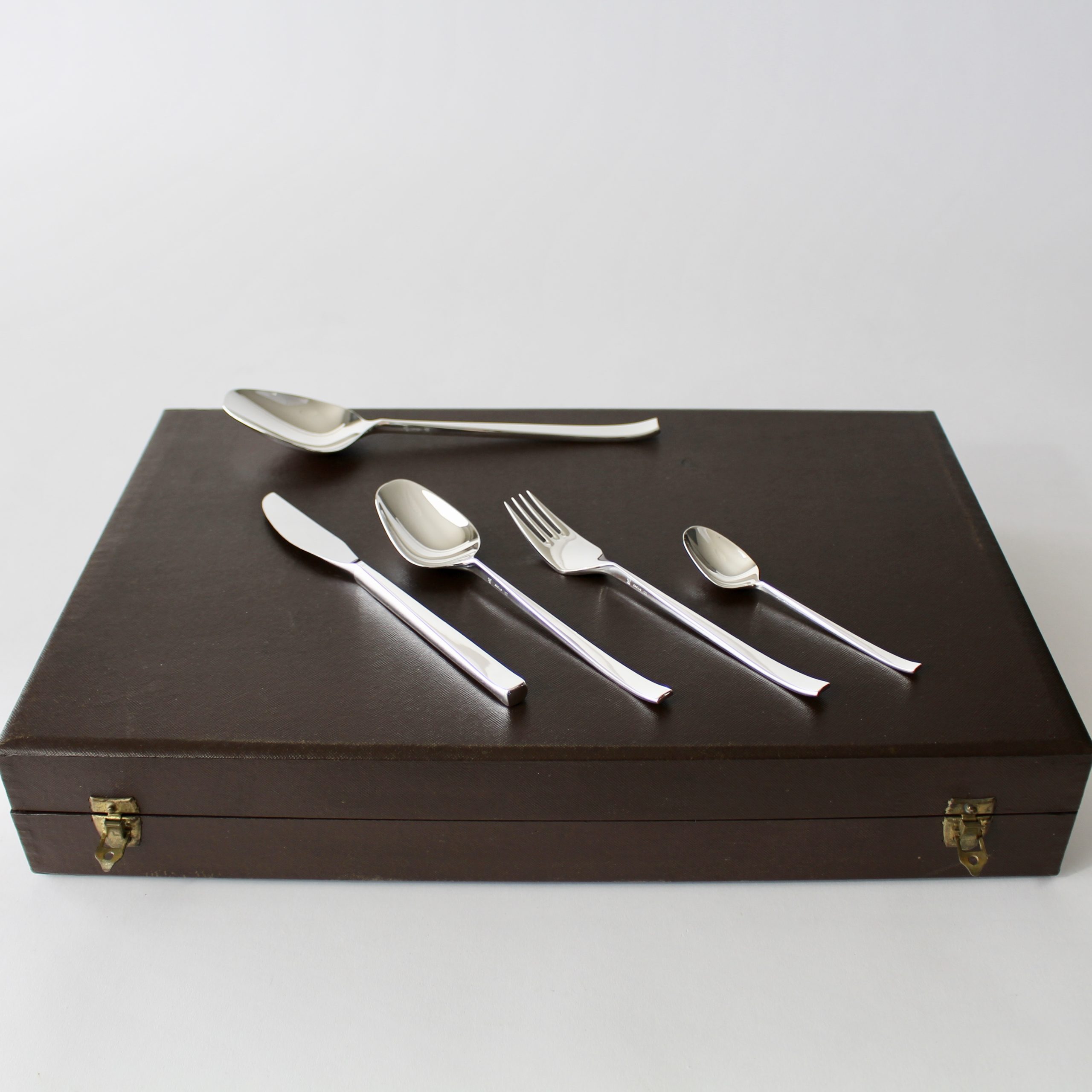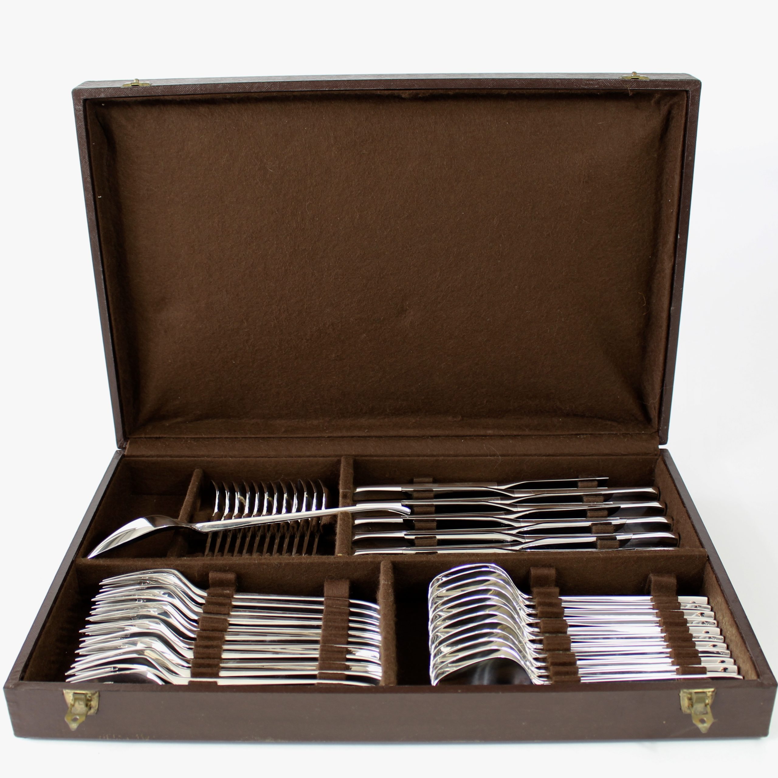 Elégante et rare ménagère en métal argenté par Ercuis vers 1975.