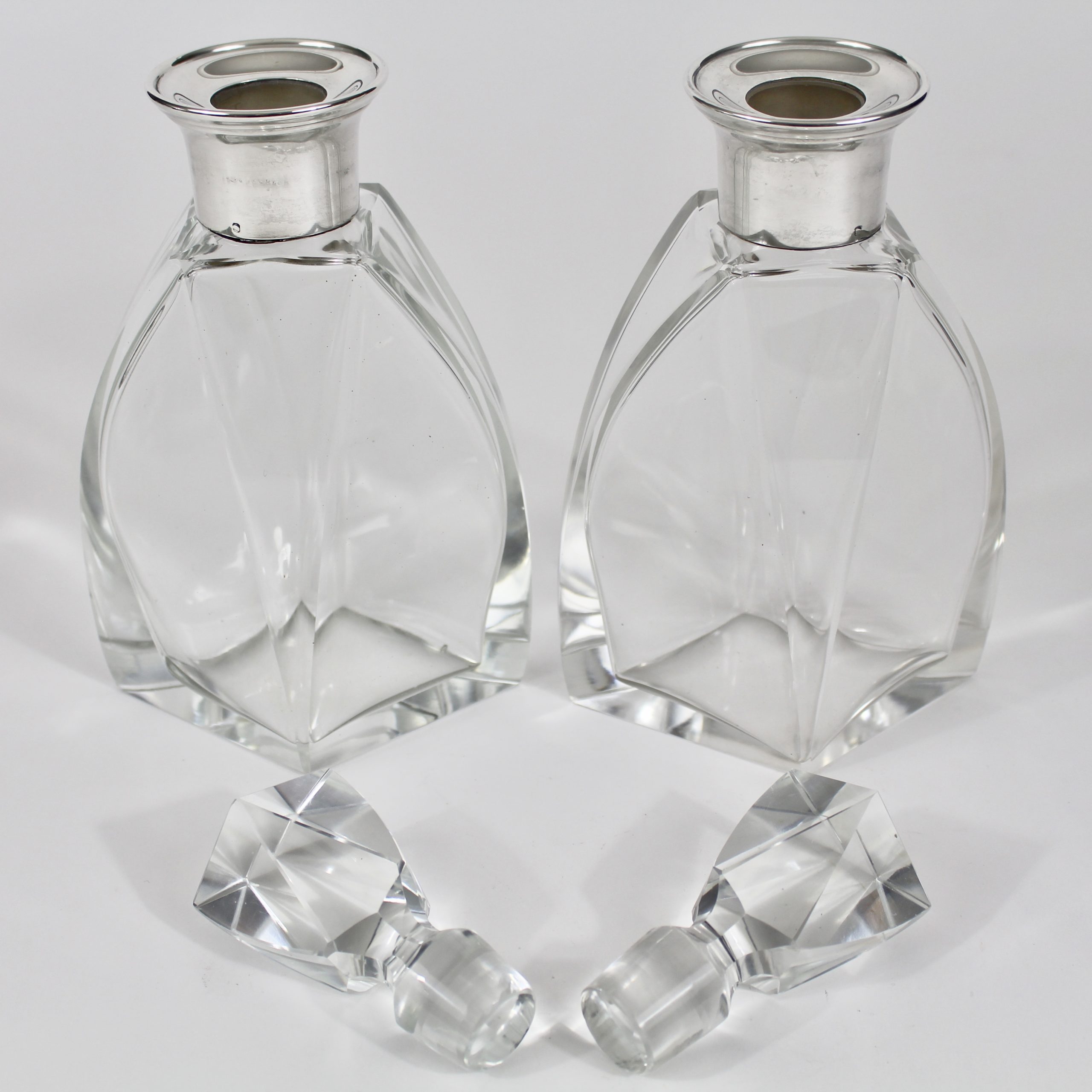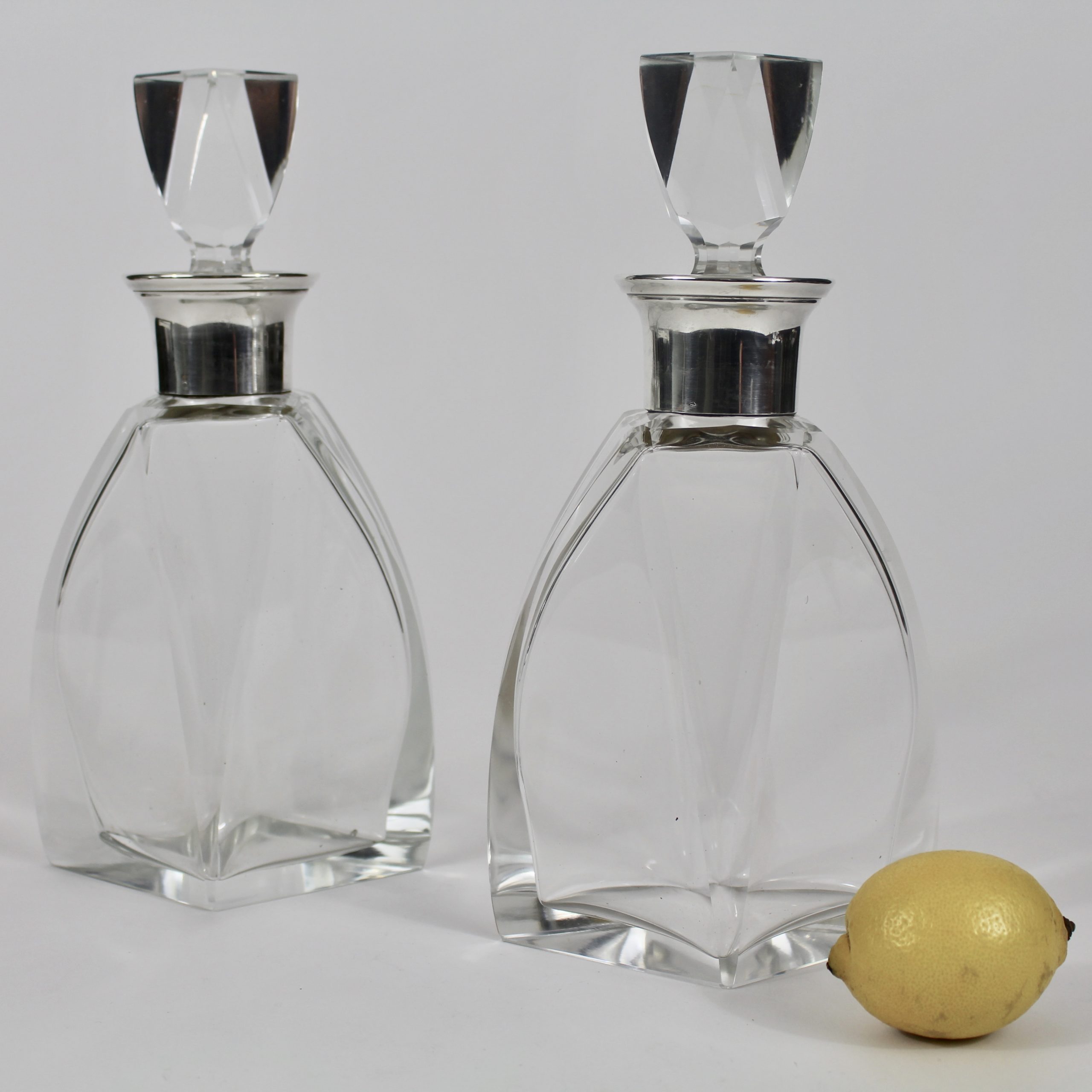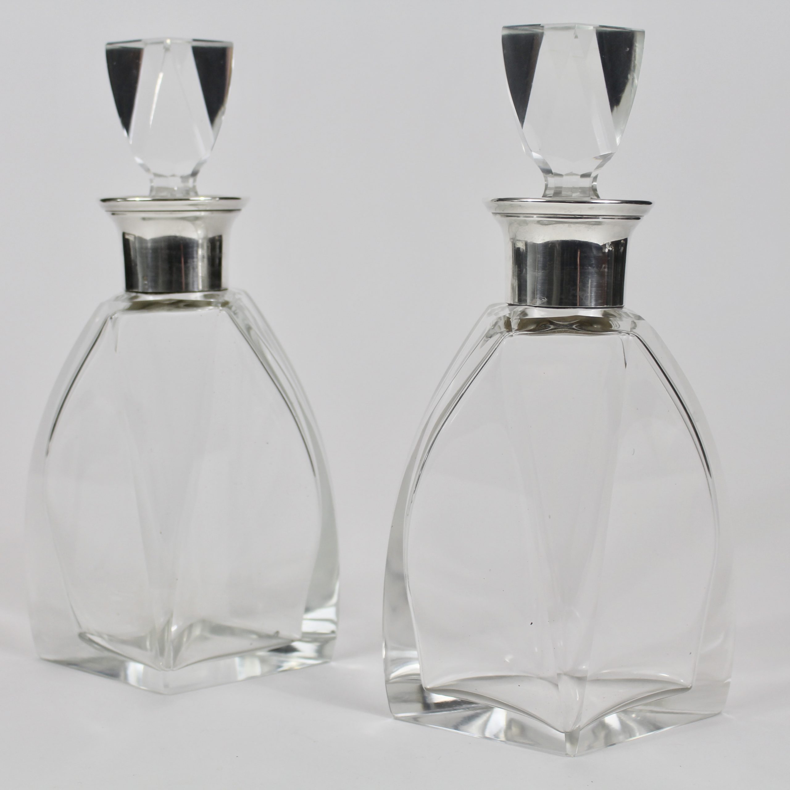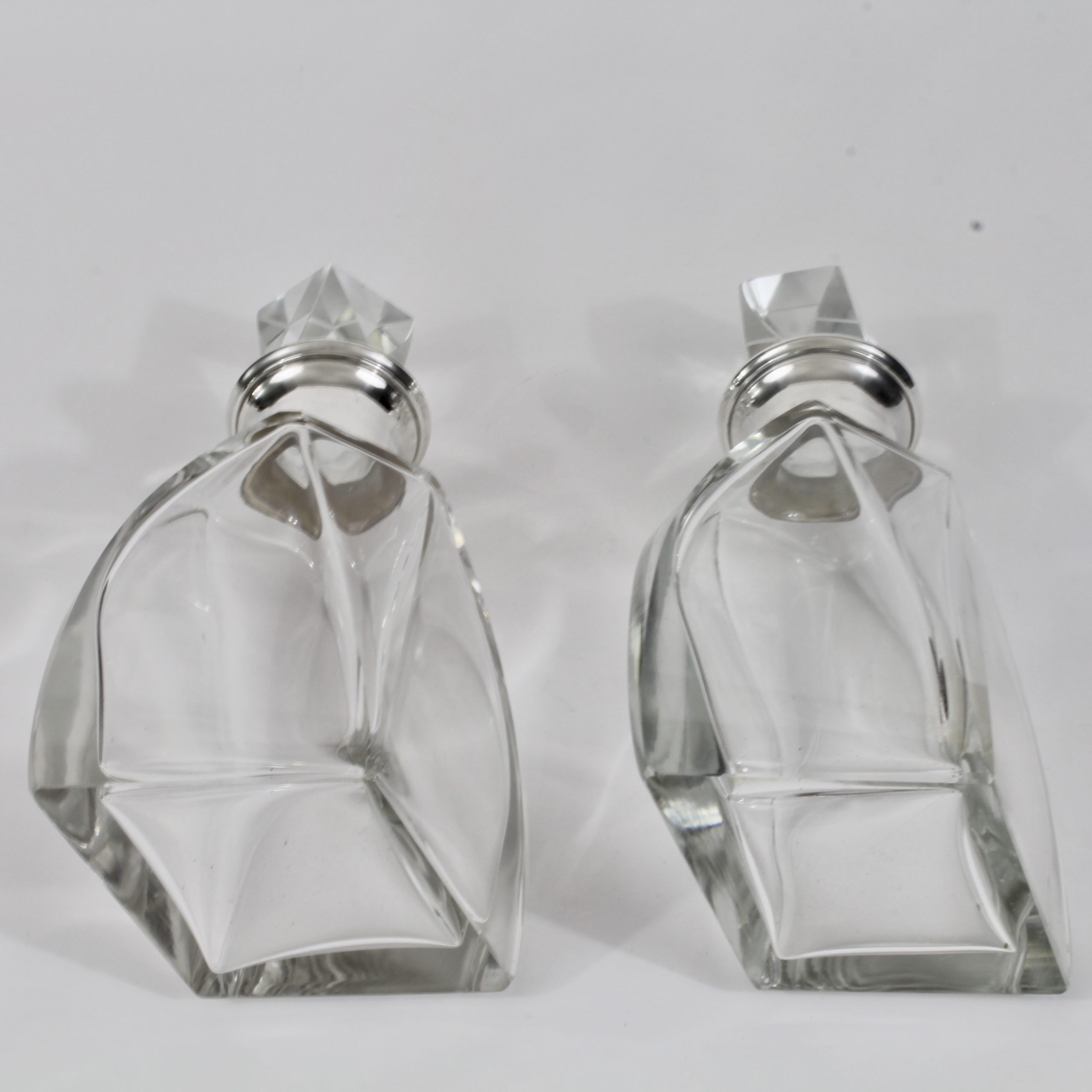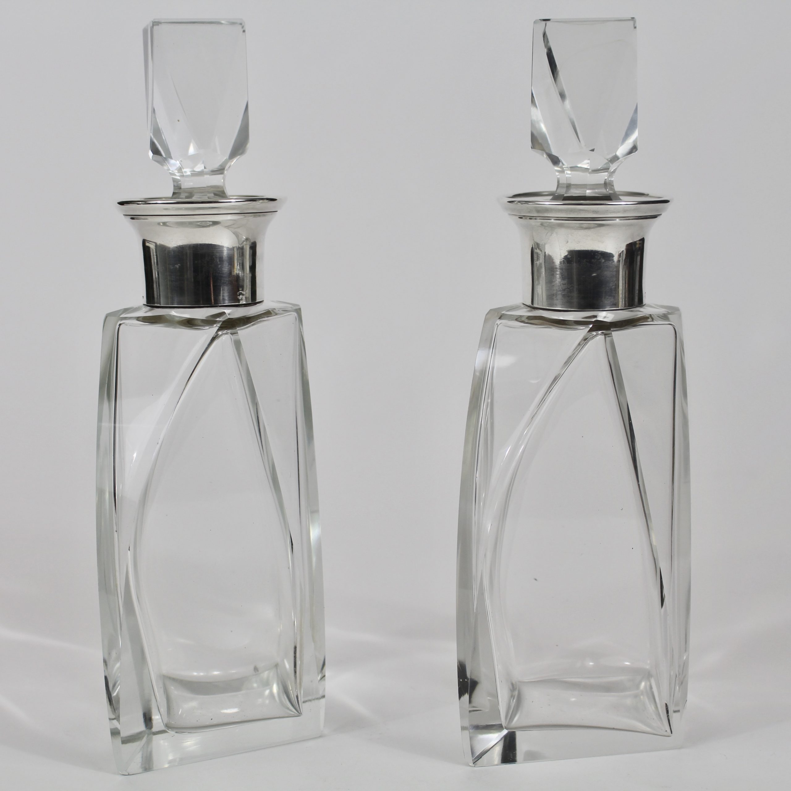 Beau modèle de carafes modernistes en cristal et argent d’époque Art Déco.