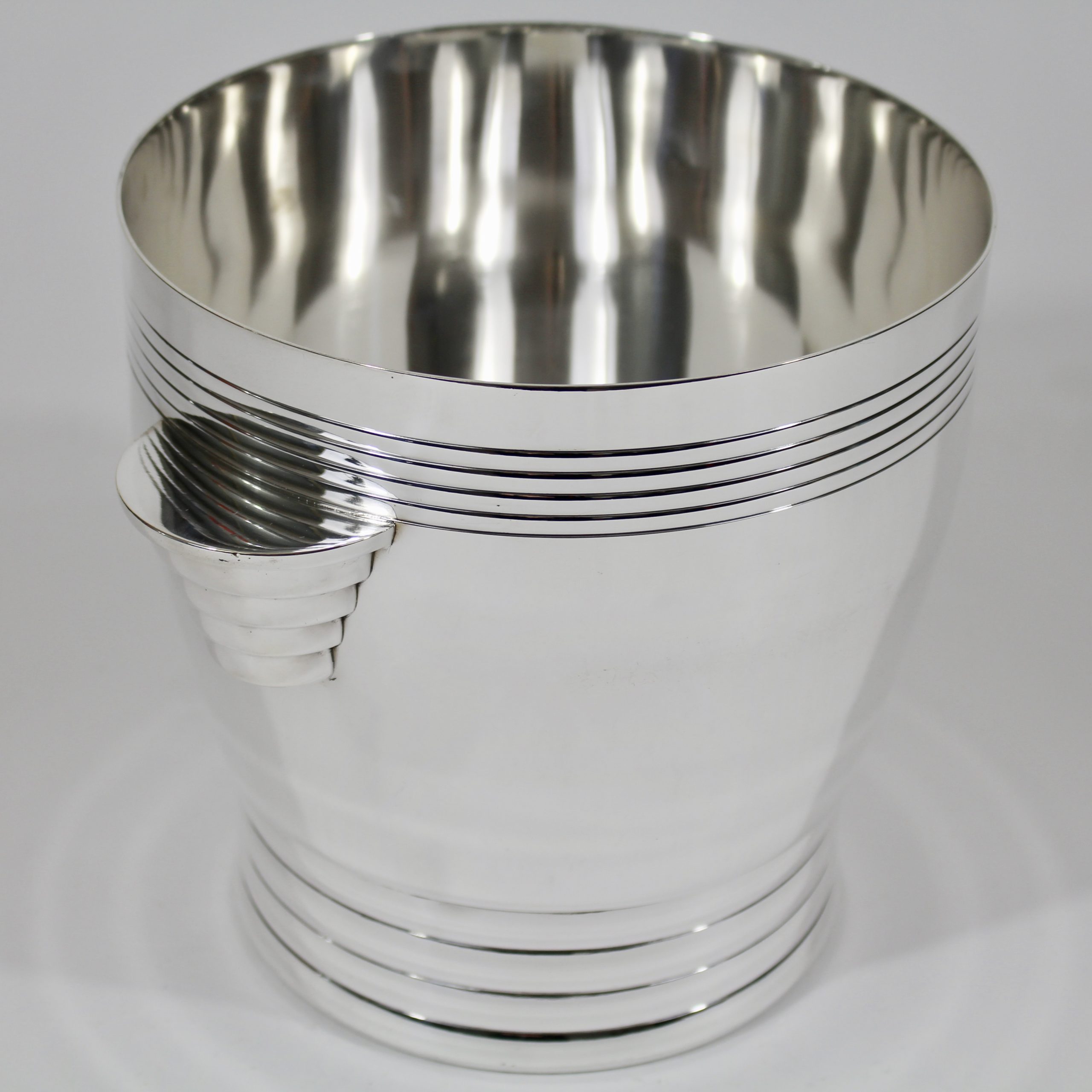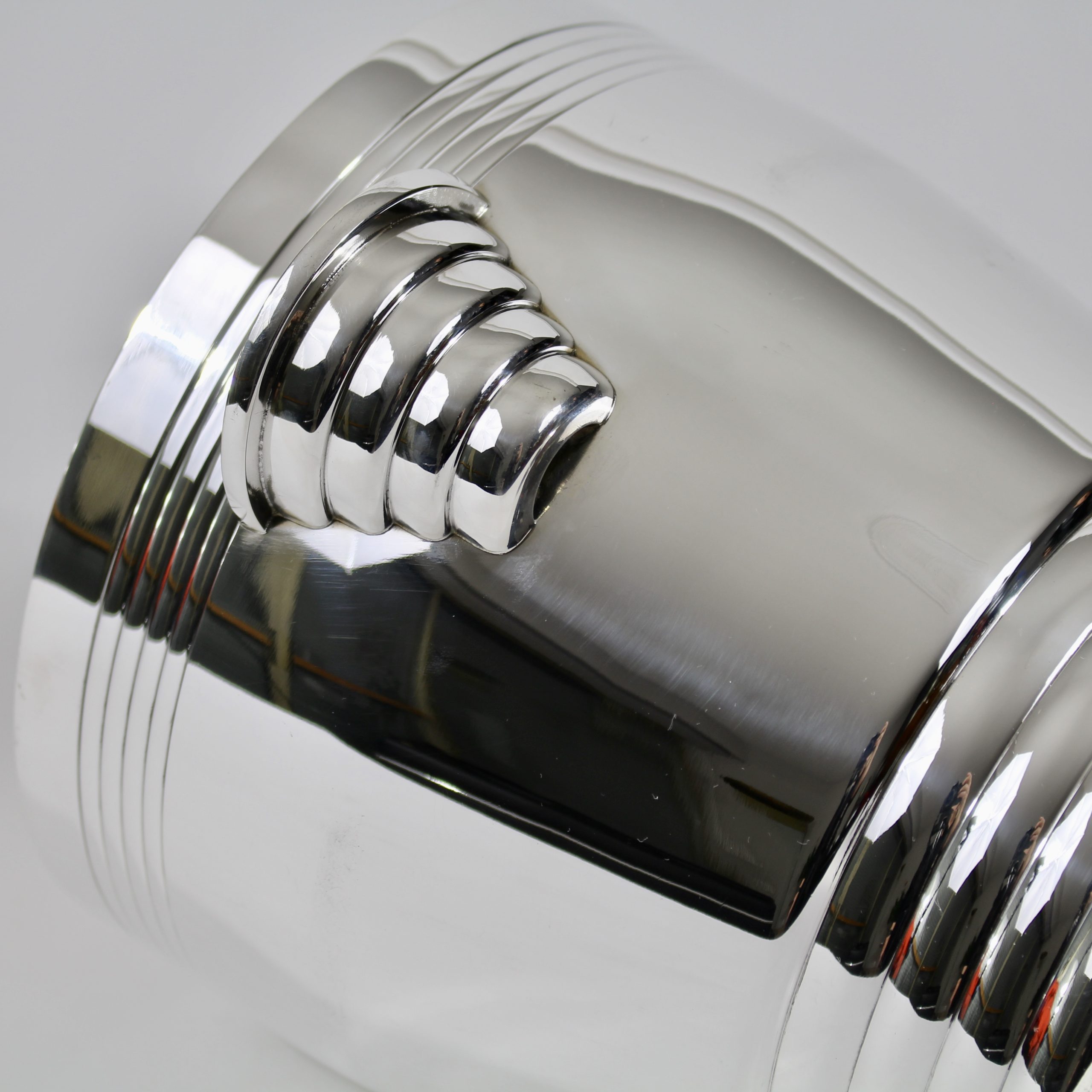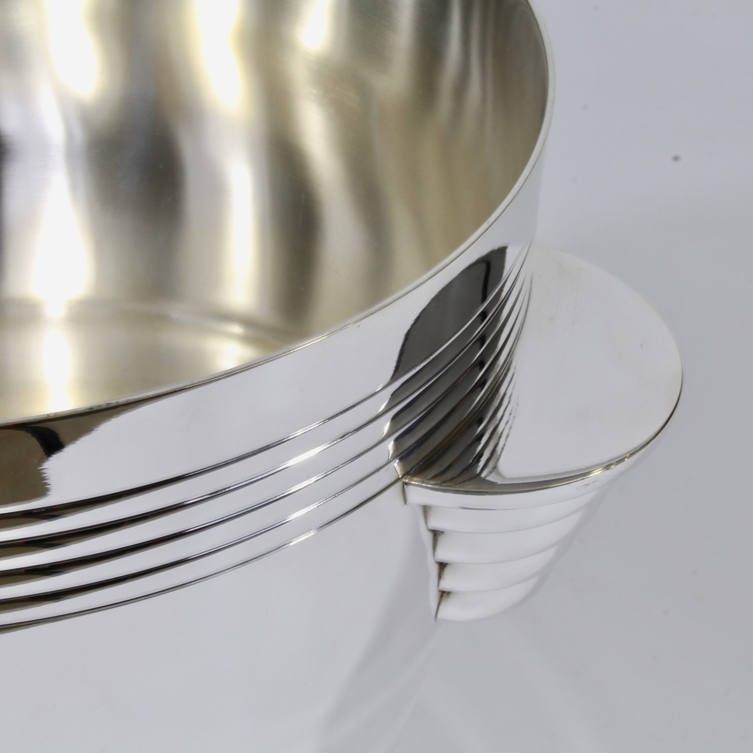 Modèle moderniste à décor de stries autour de la base et des poignées.