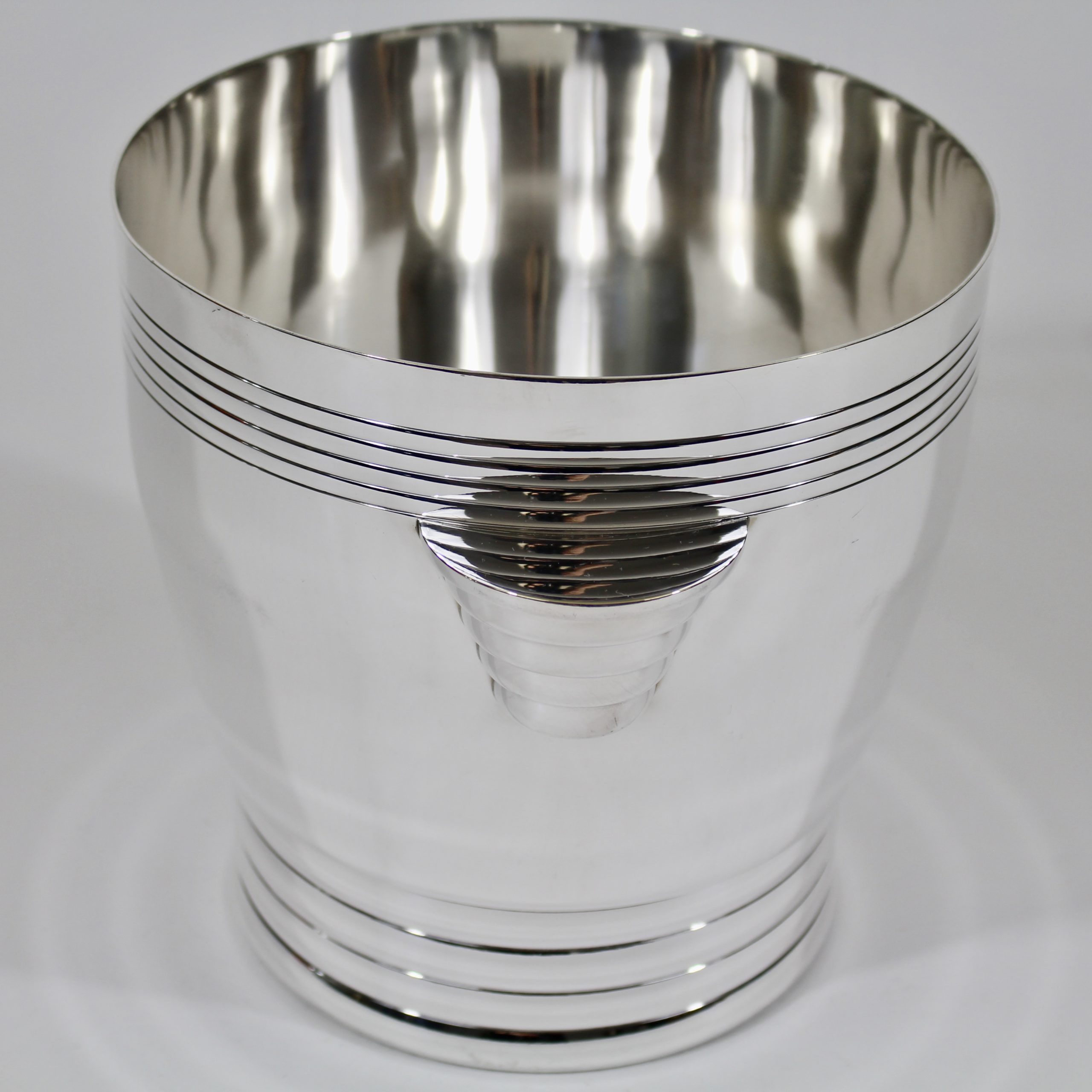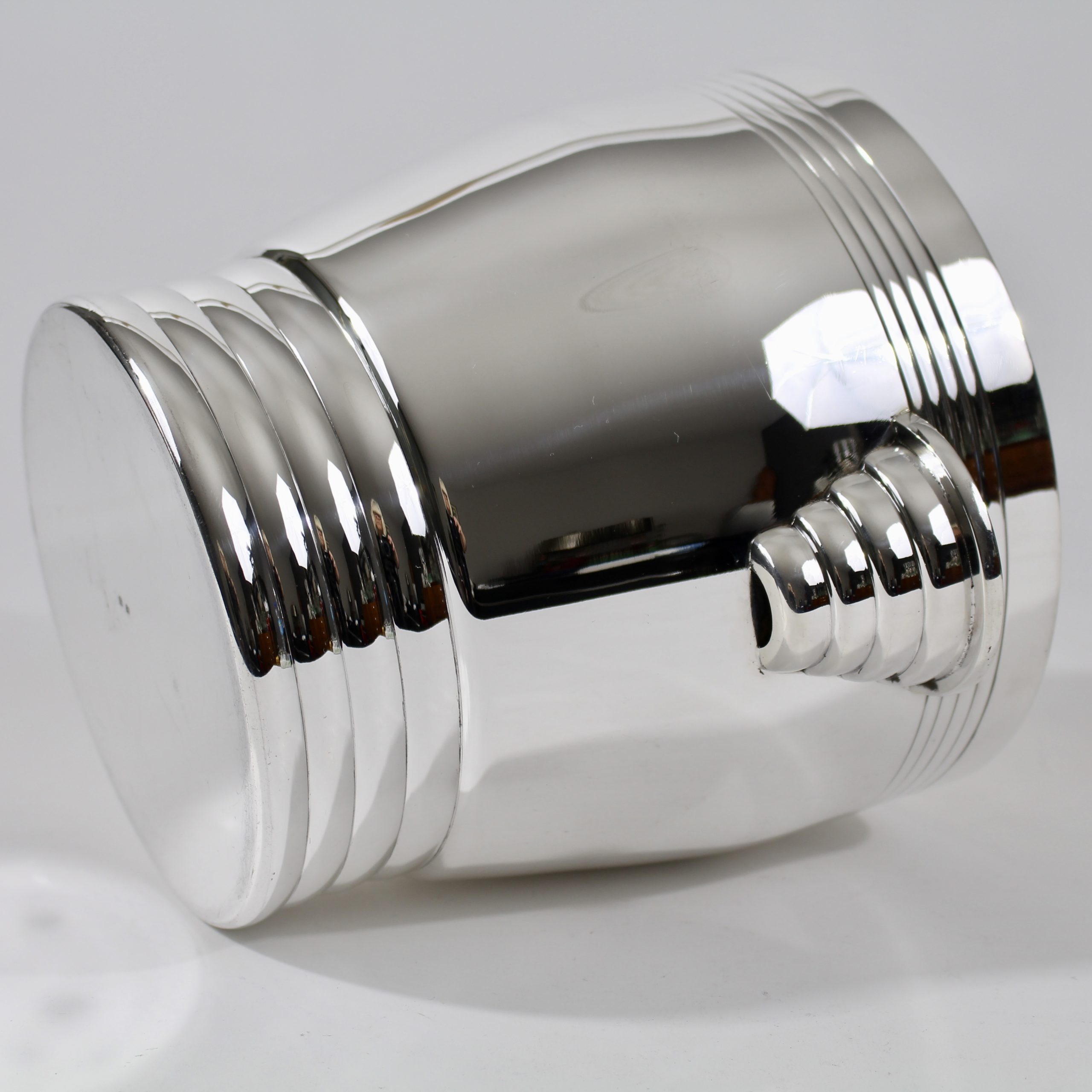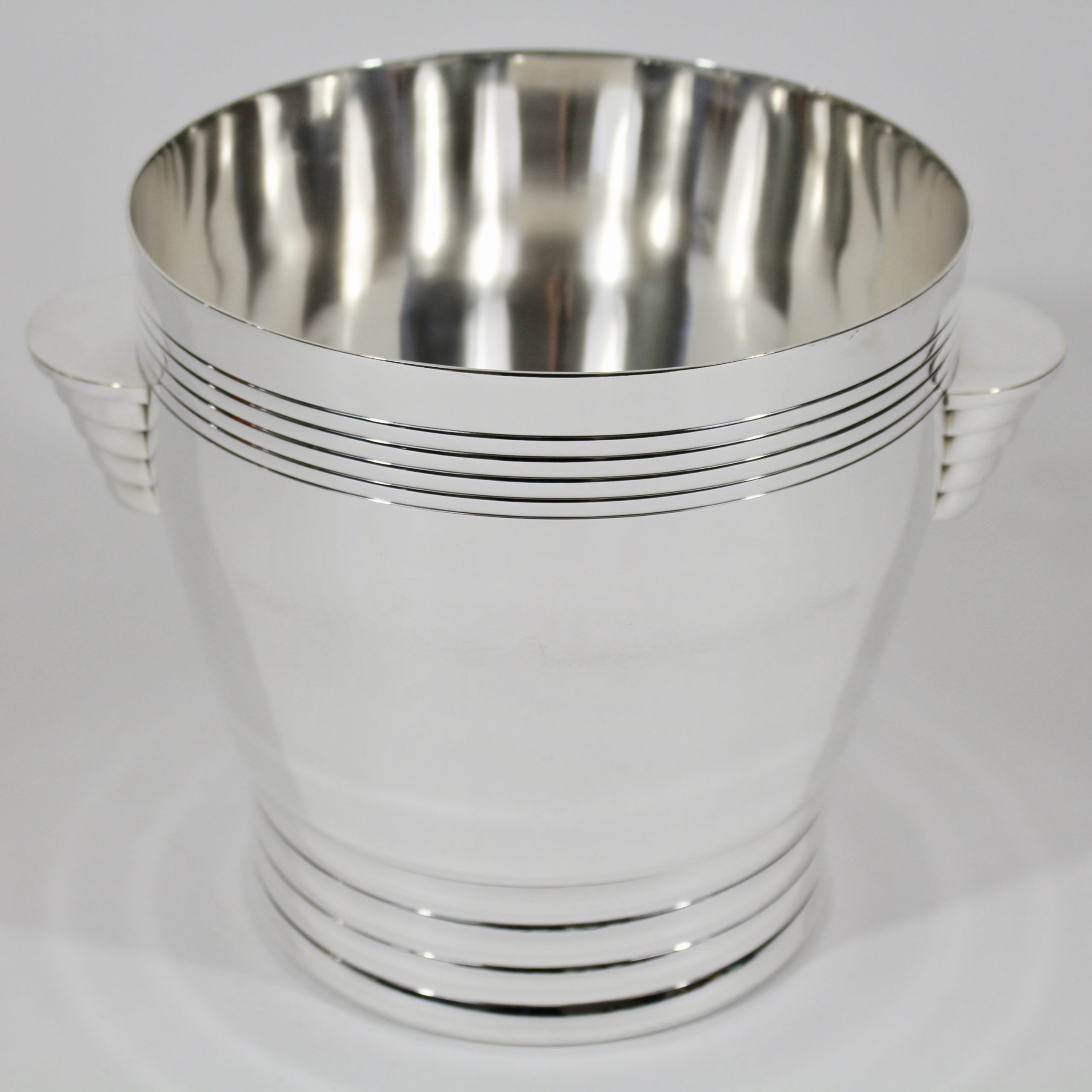 Modèle moderniste à décor de stries autour de la base et des poignées.