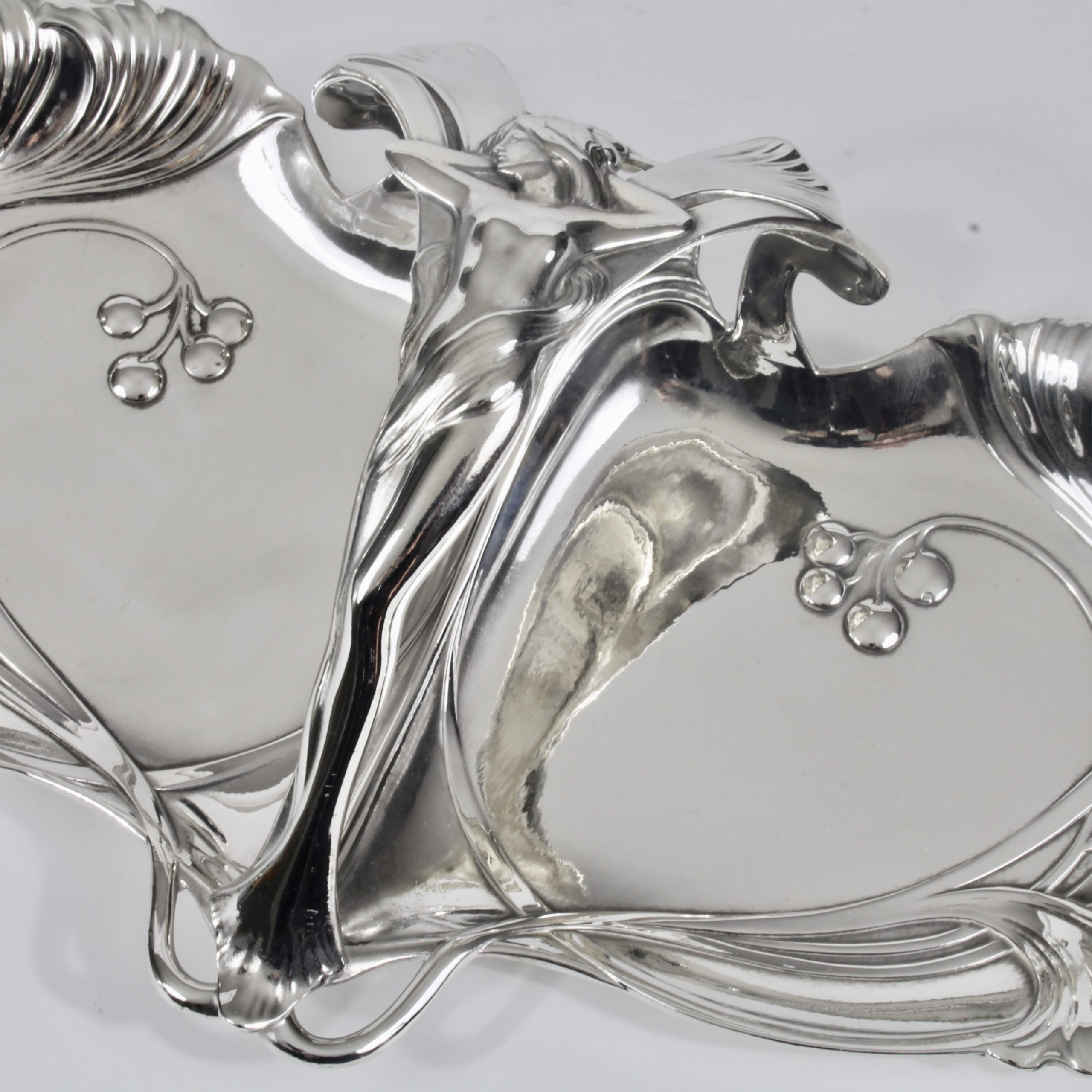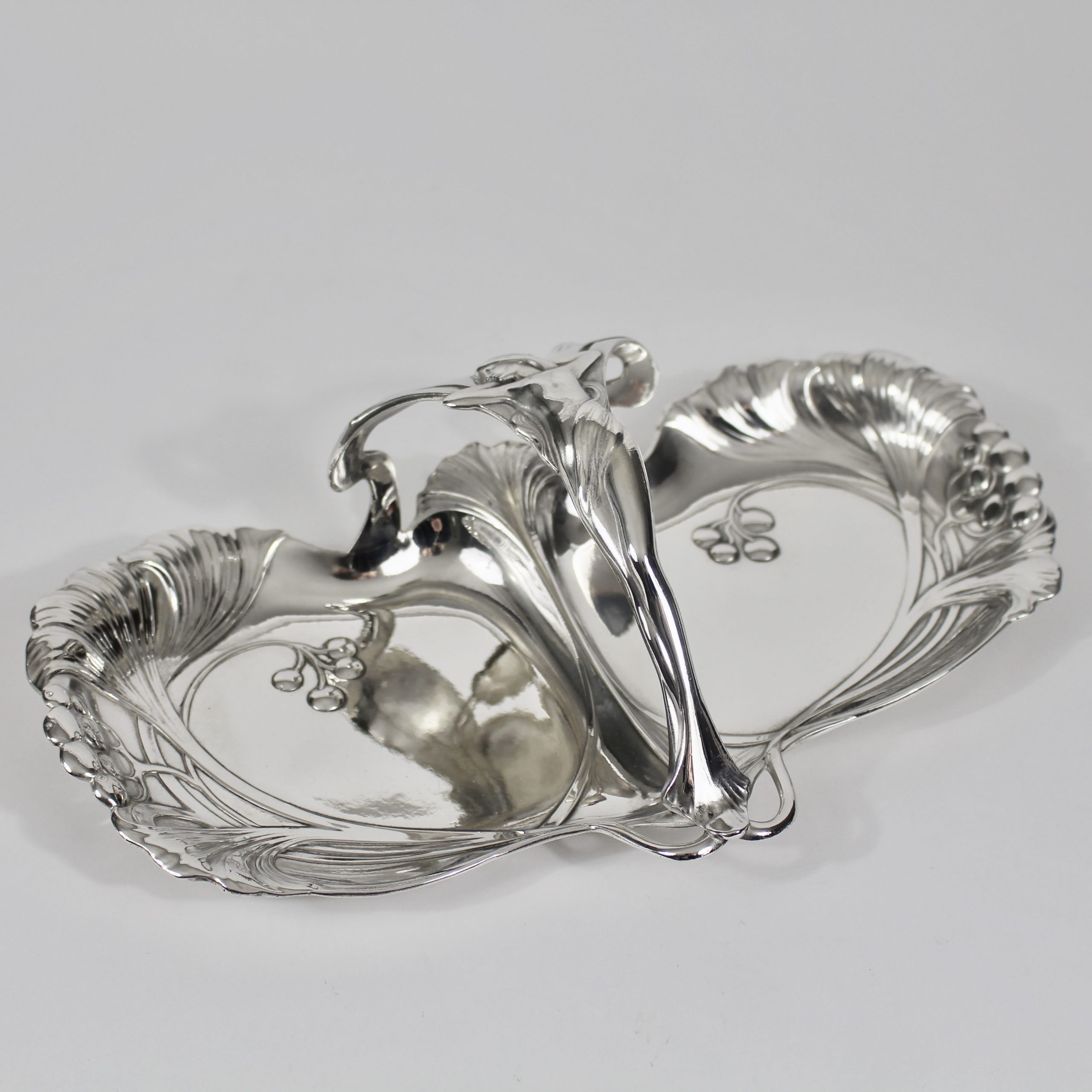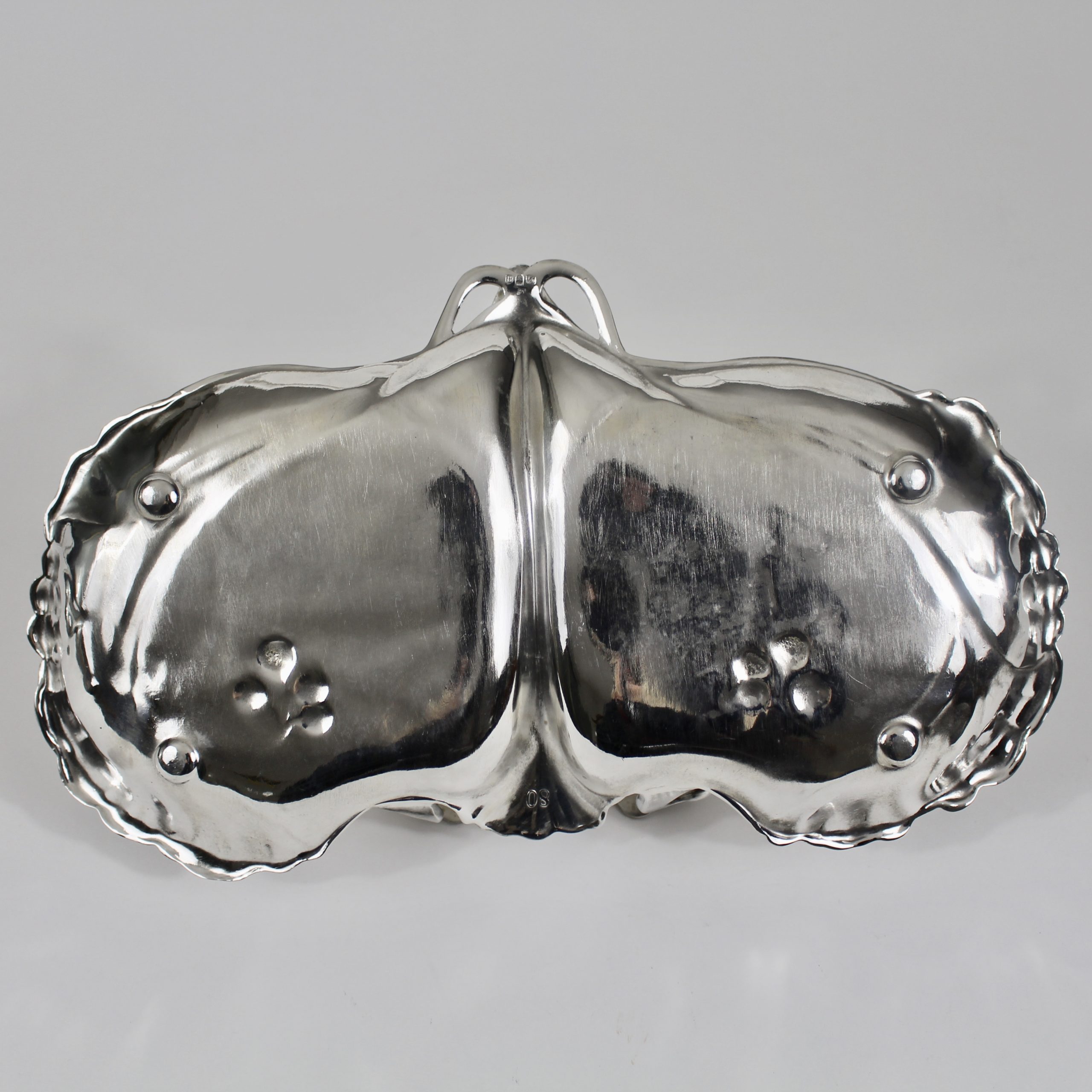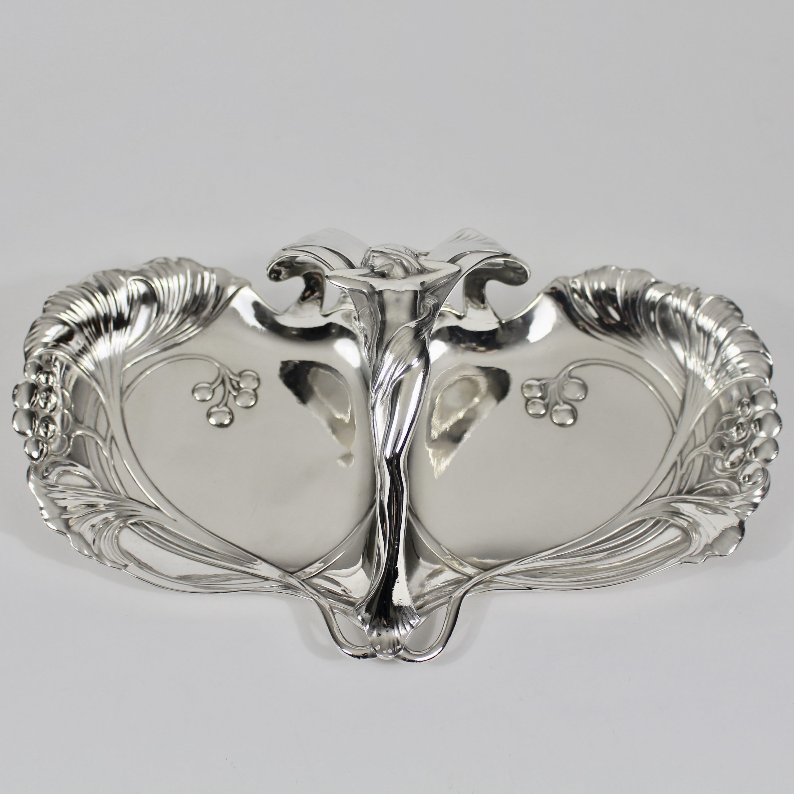 Elégant et rare vide poche double en métal argenté d’époque Art Nouveau.