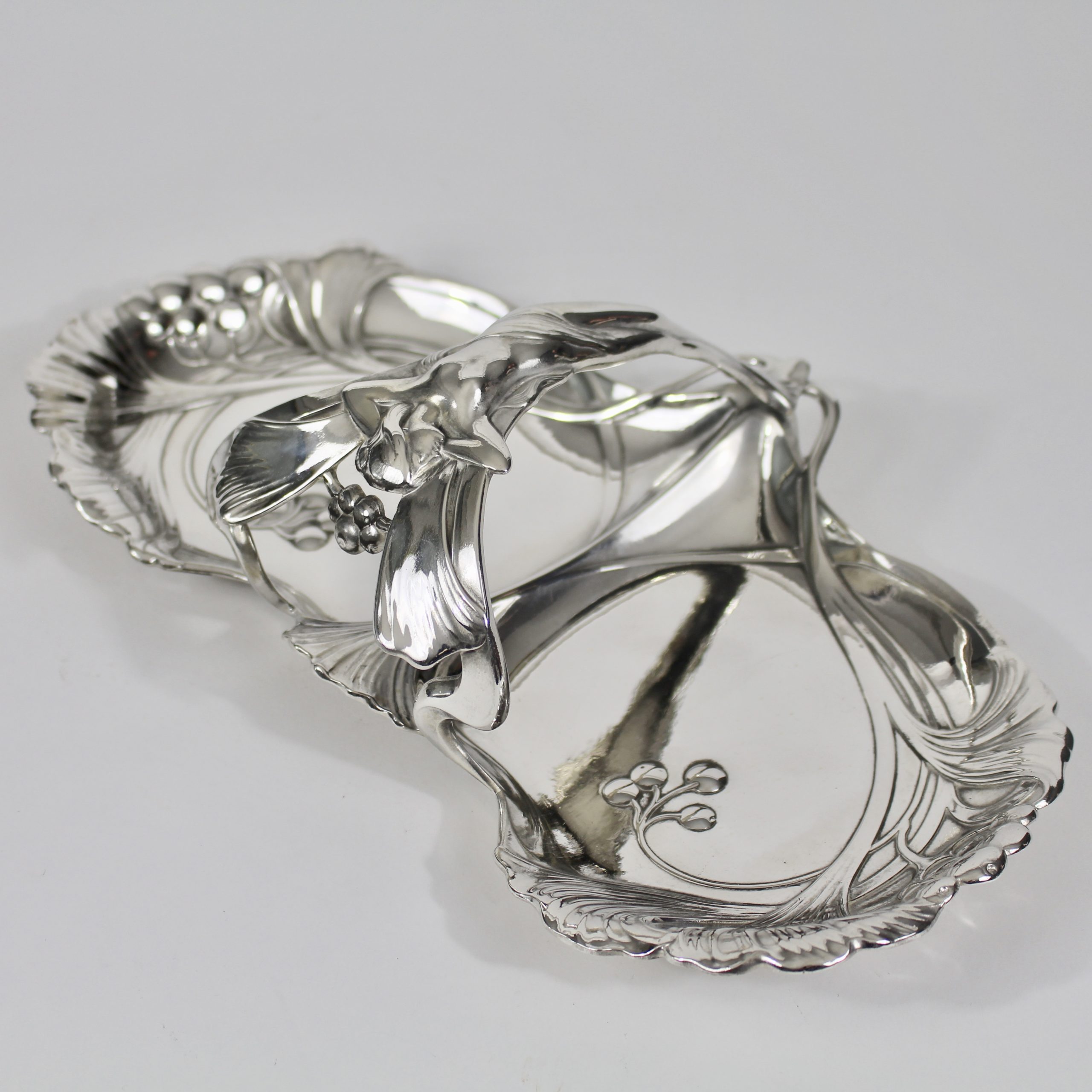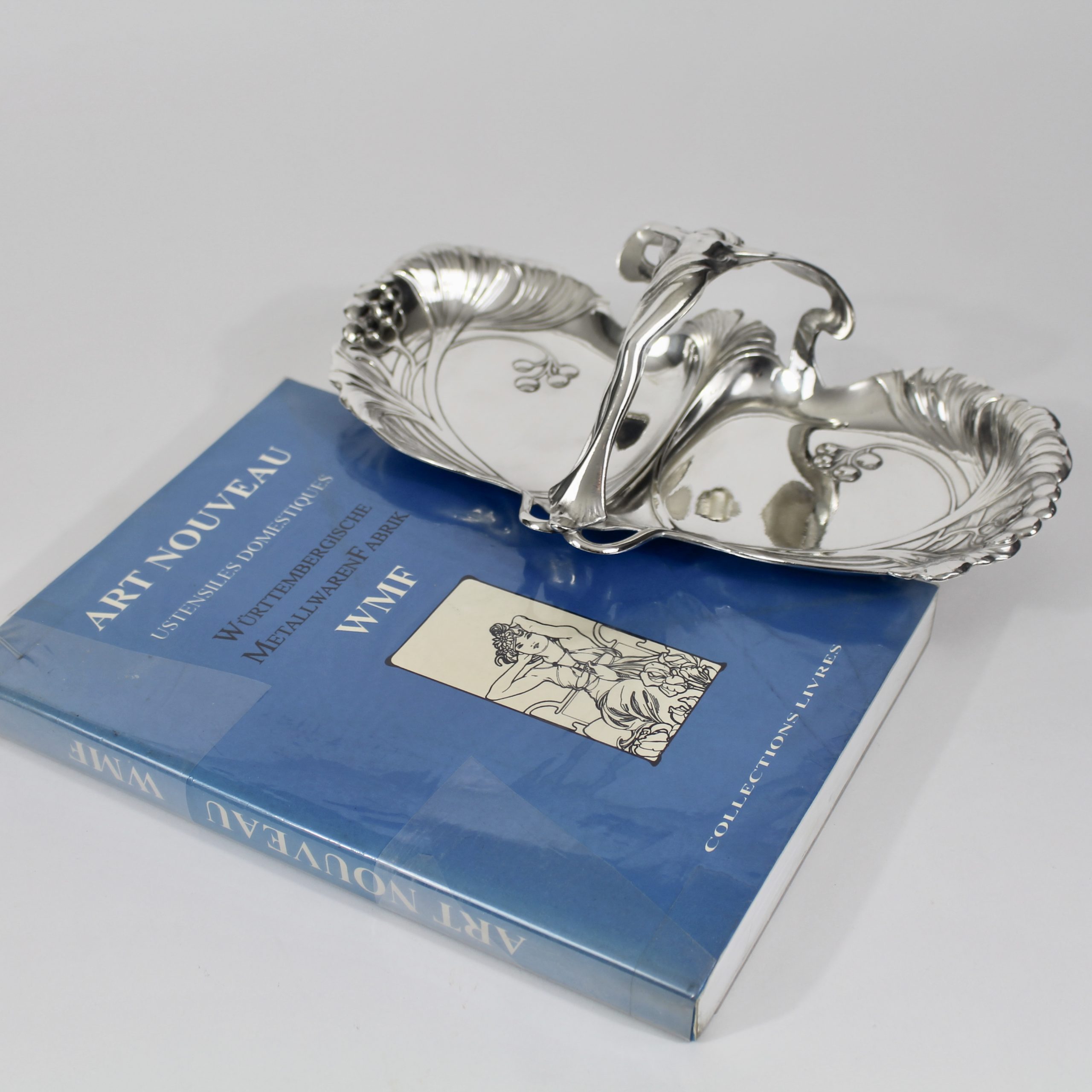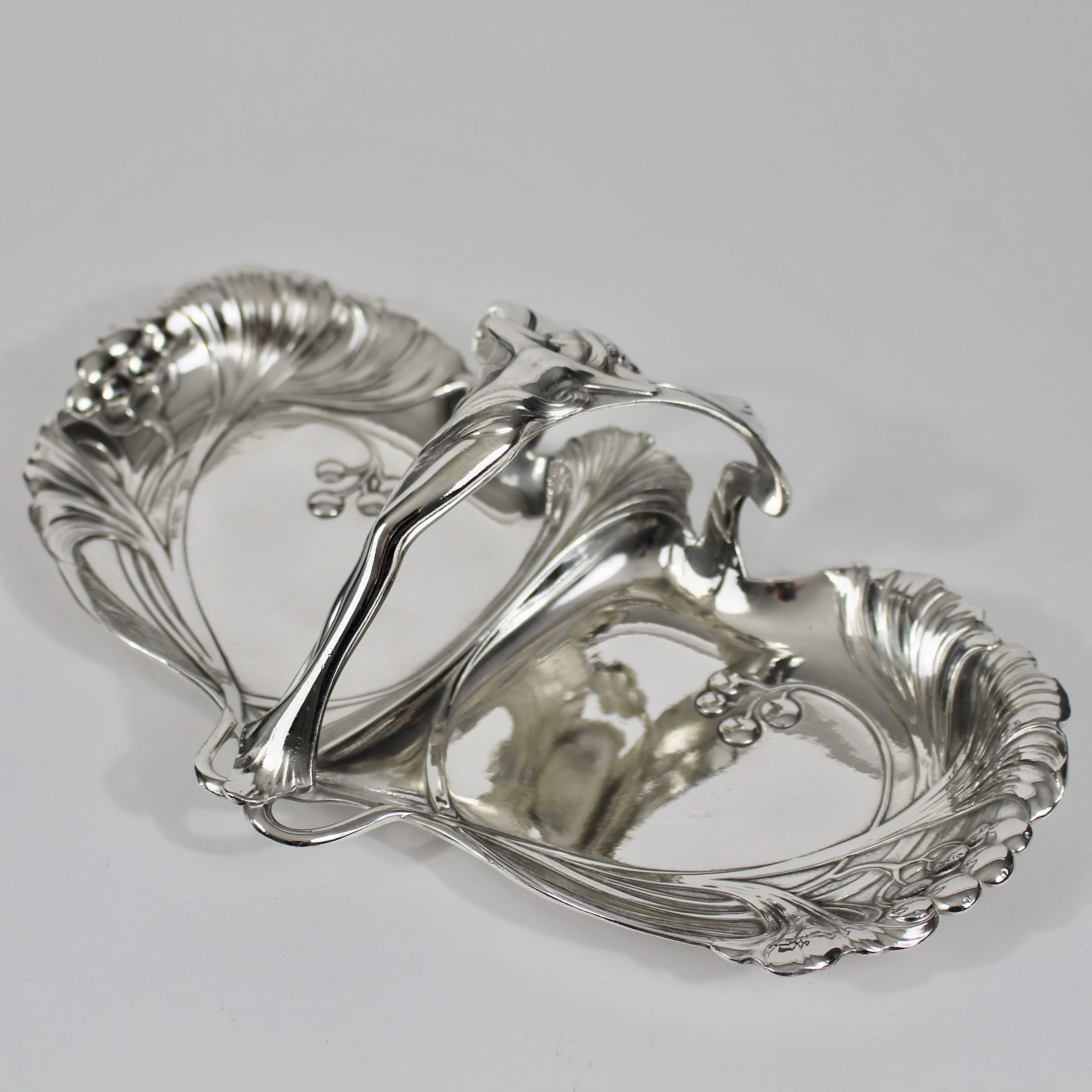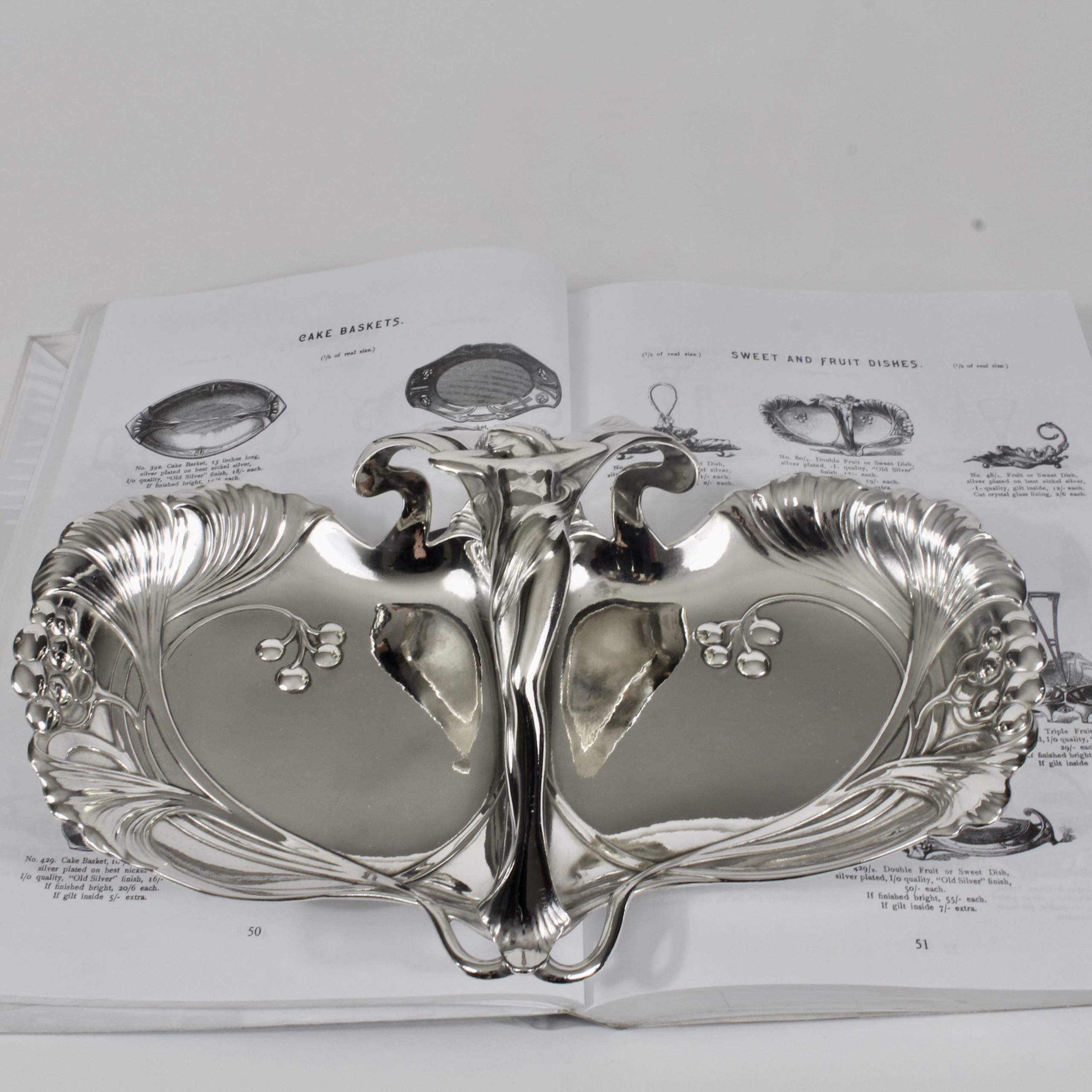 Elégant et rare vide poche double en métal argenté d’époque Art Nouveau.