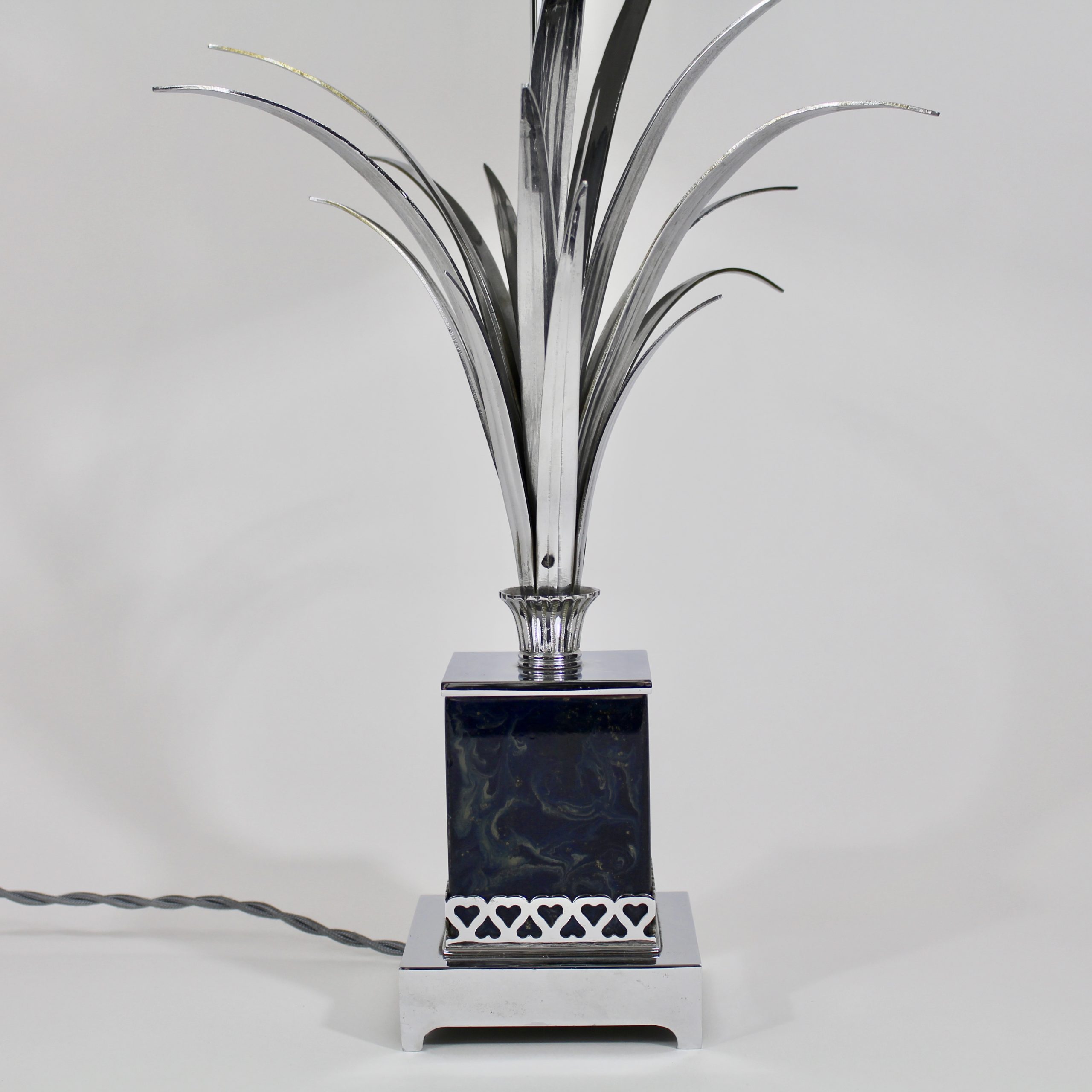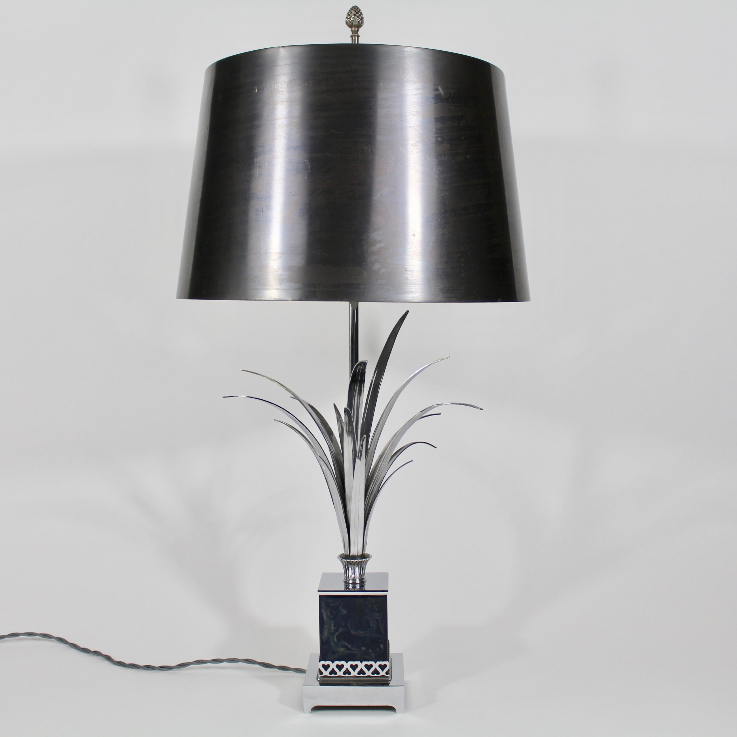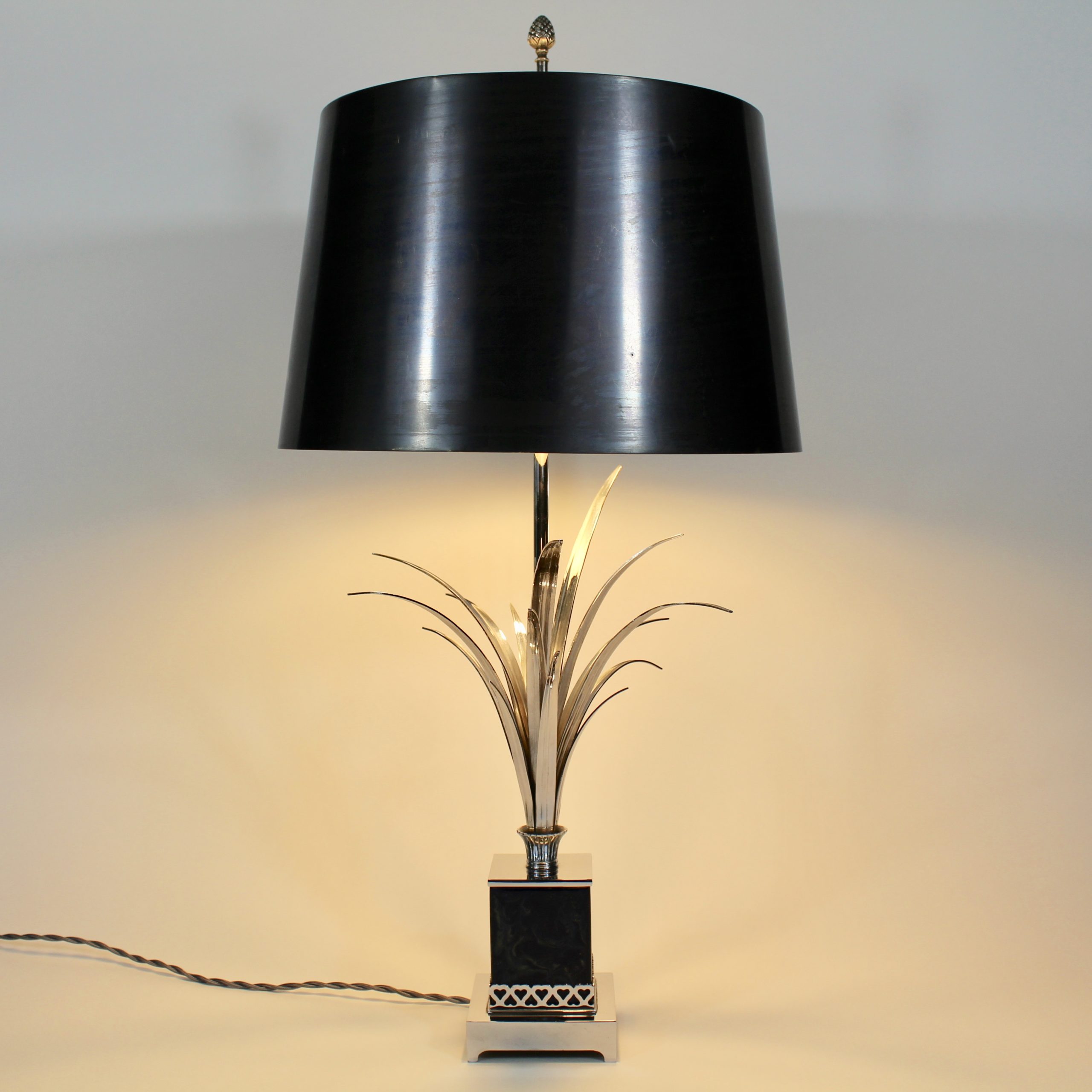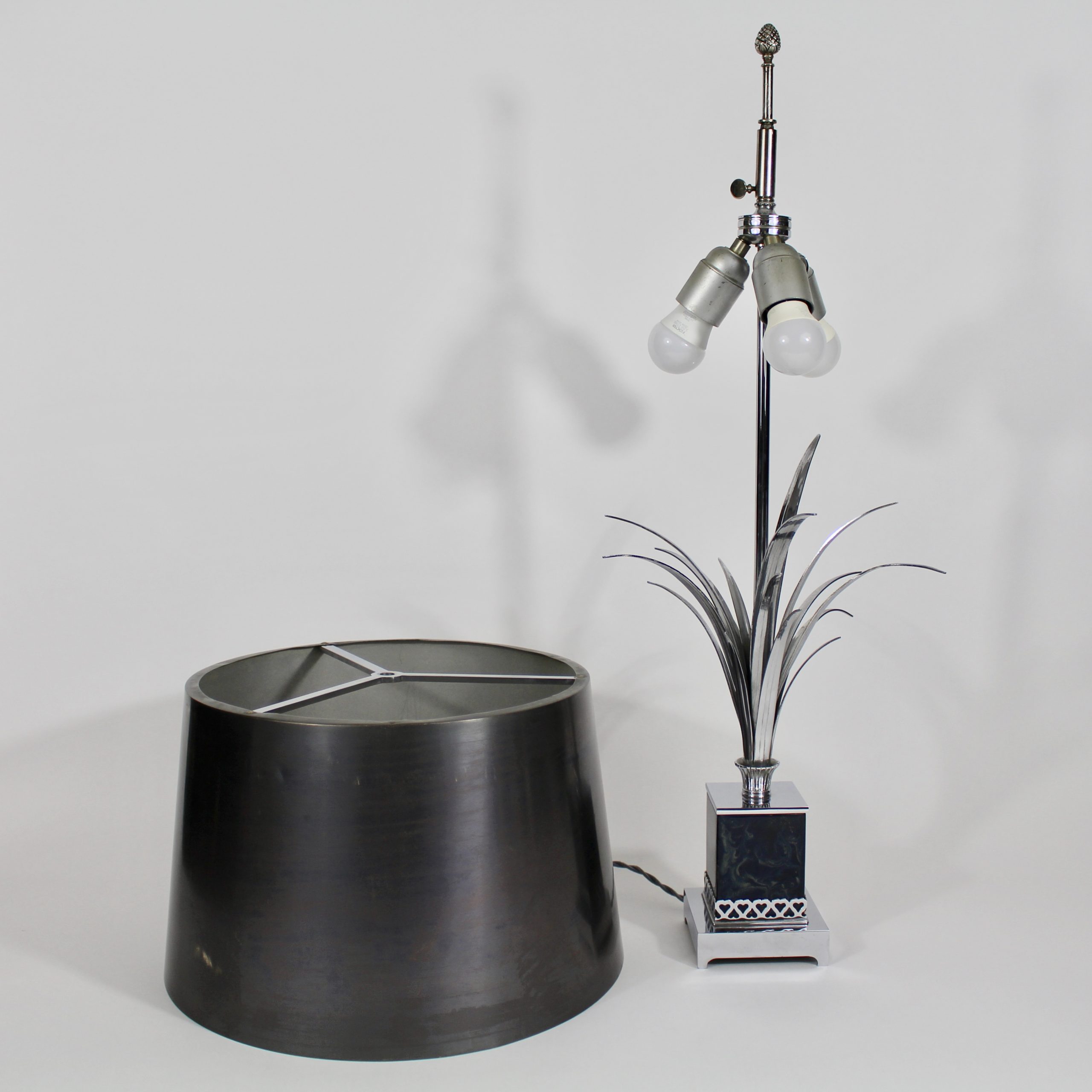 Lampe en acier nickelé pour les roseaux, métal patiné et bronze nickelé.