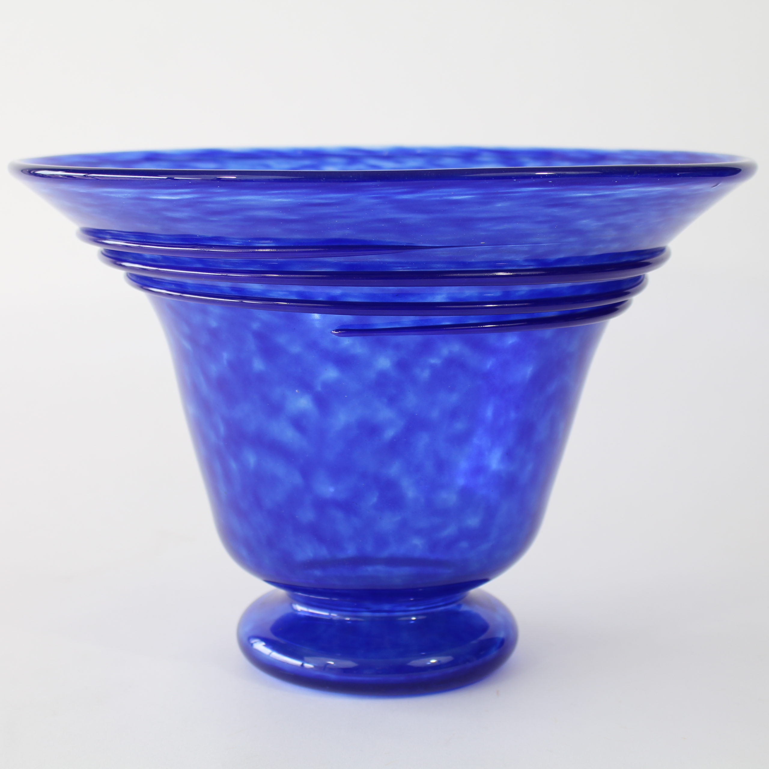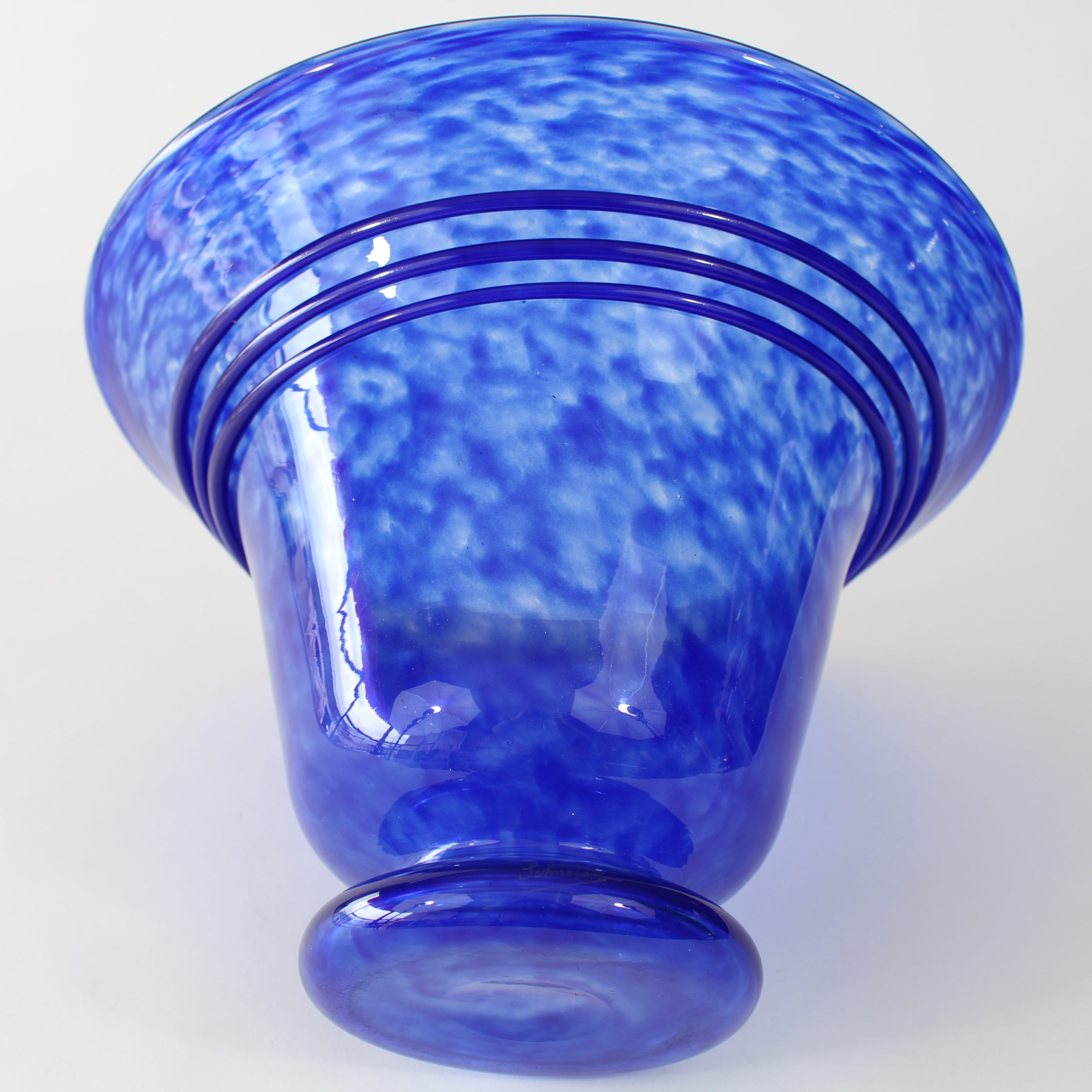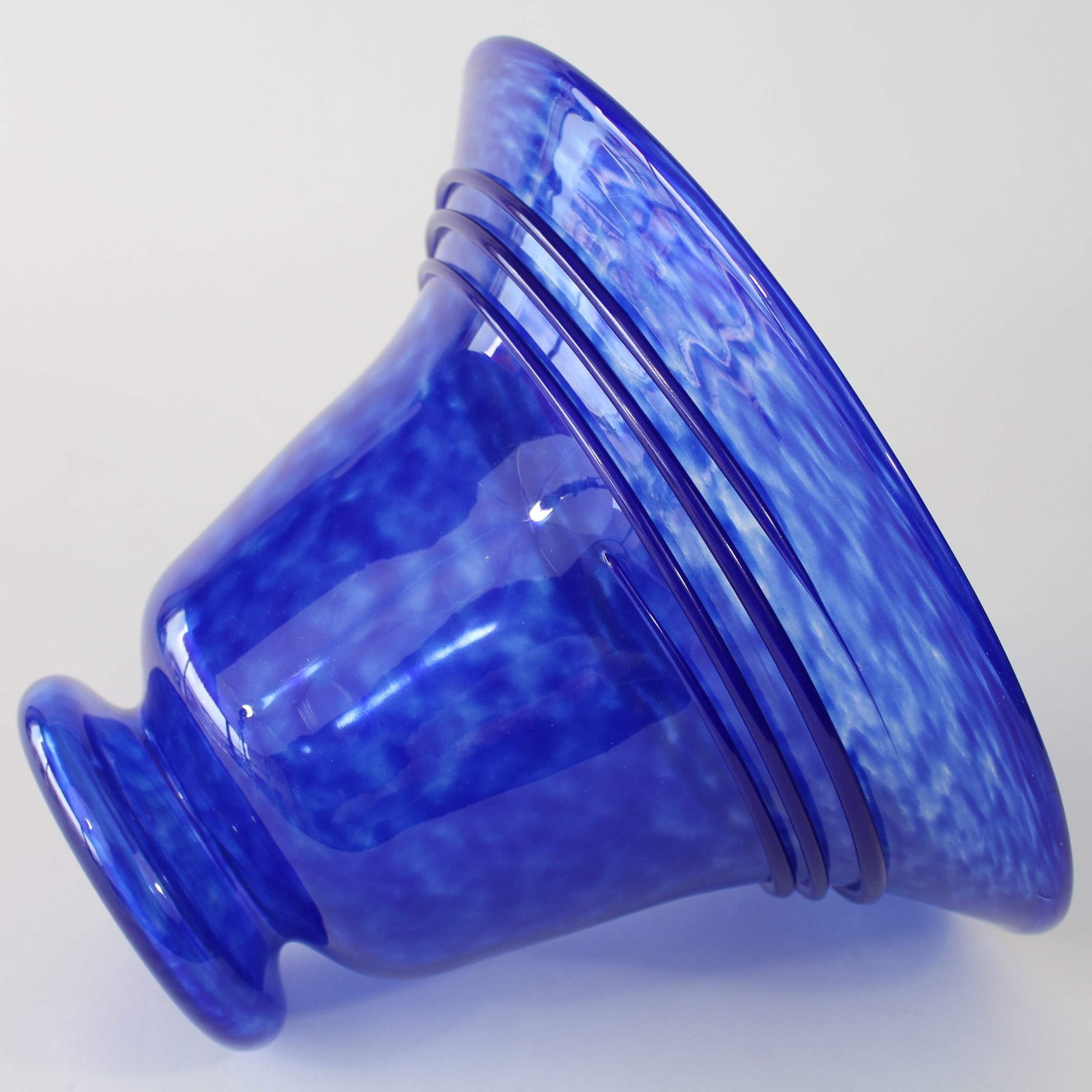 Modèle en verre poudré bleu foncé, spirale de la même couleur appliquée à chaud.