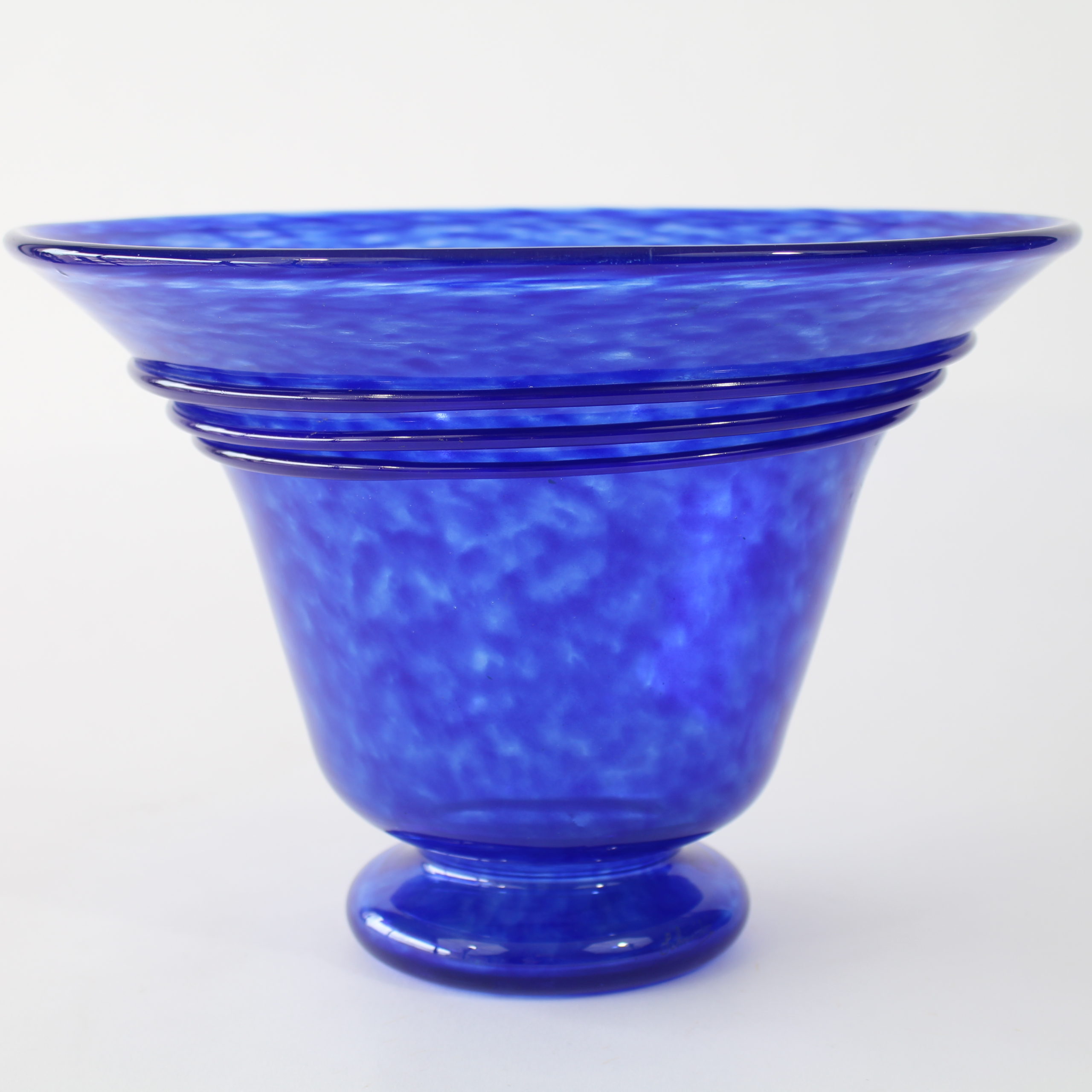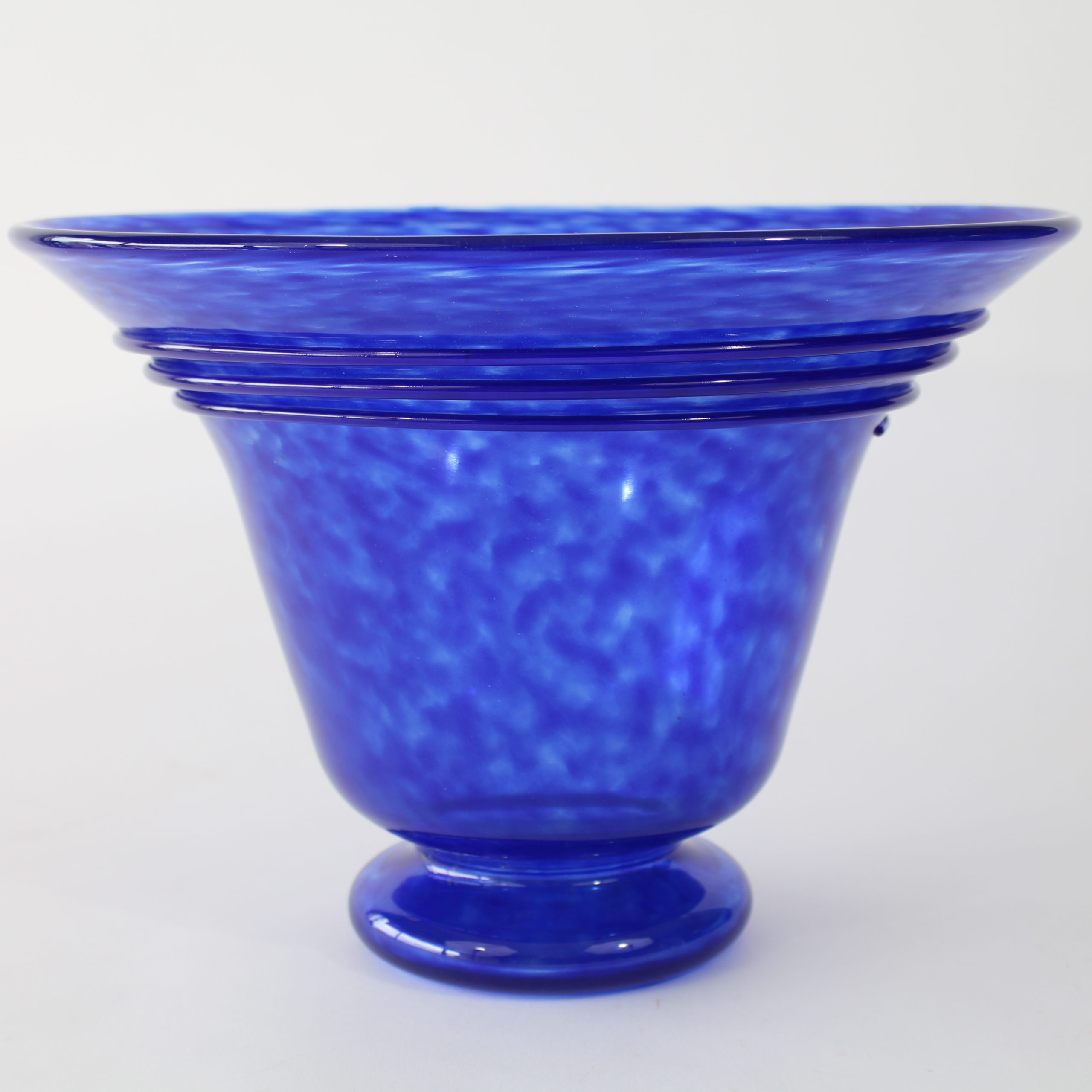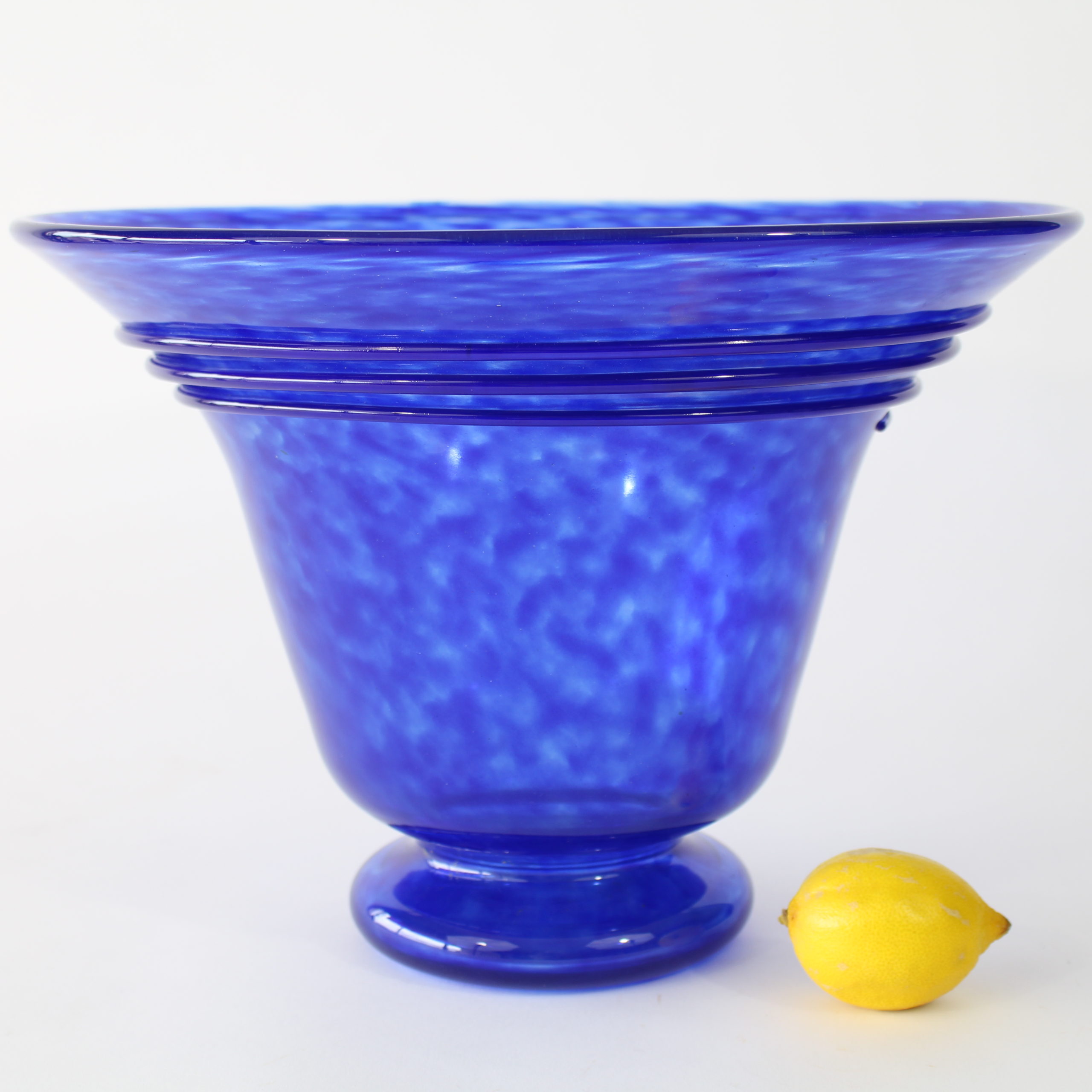 Modèle en verre poudré bleu foncé, spirale de la même couleur appliquée à chaud.