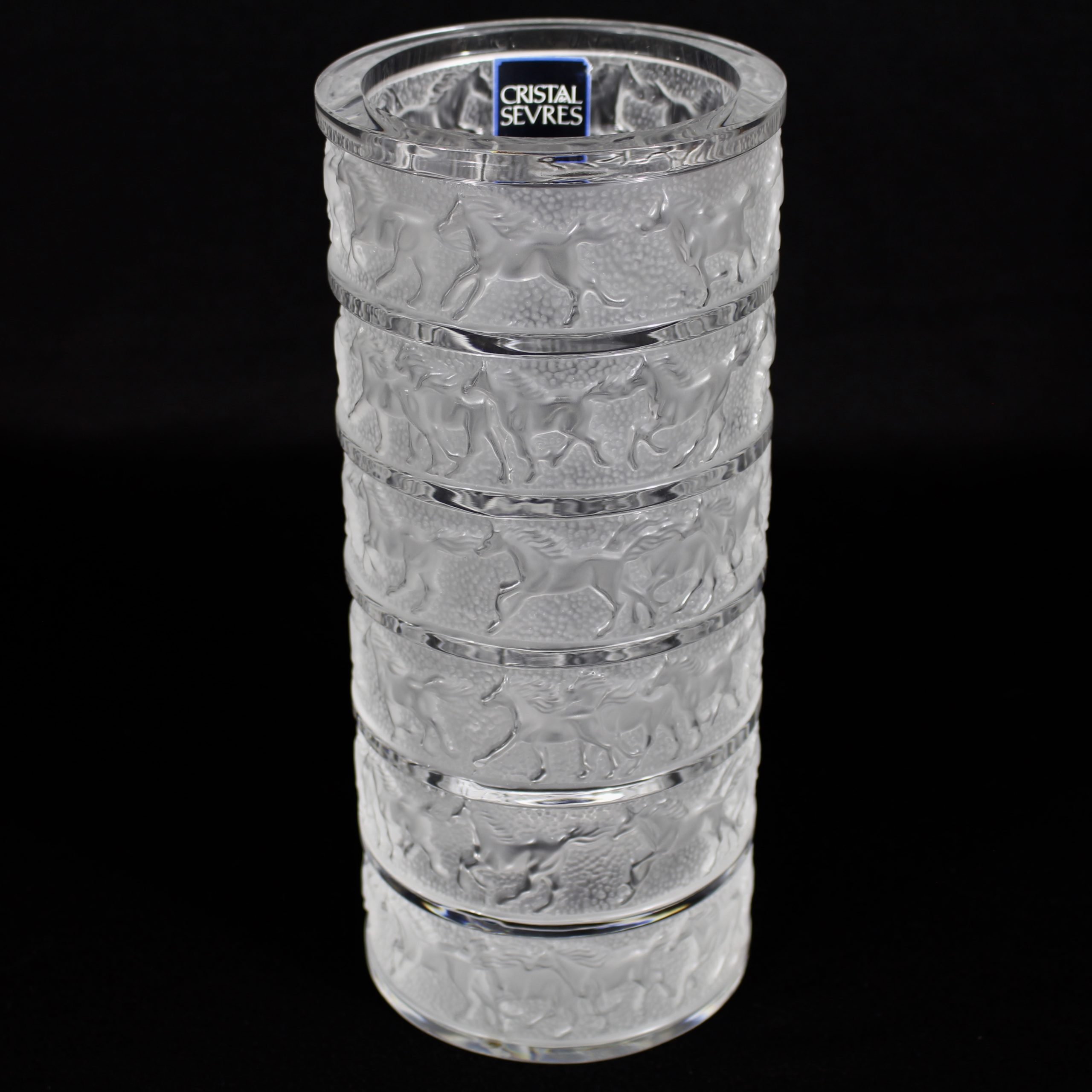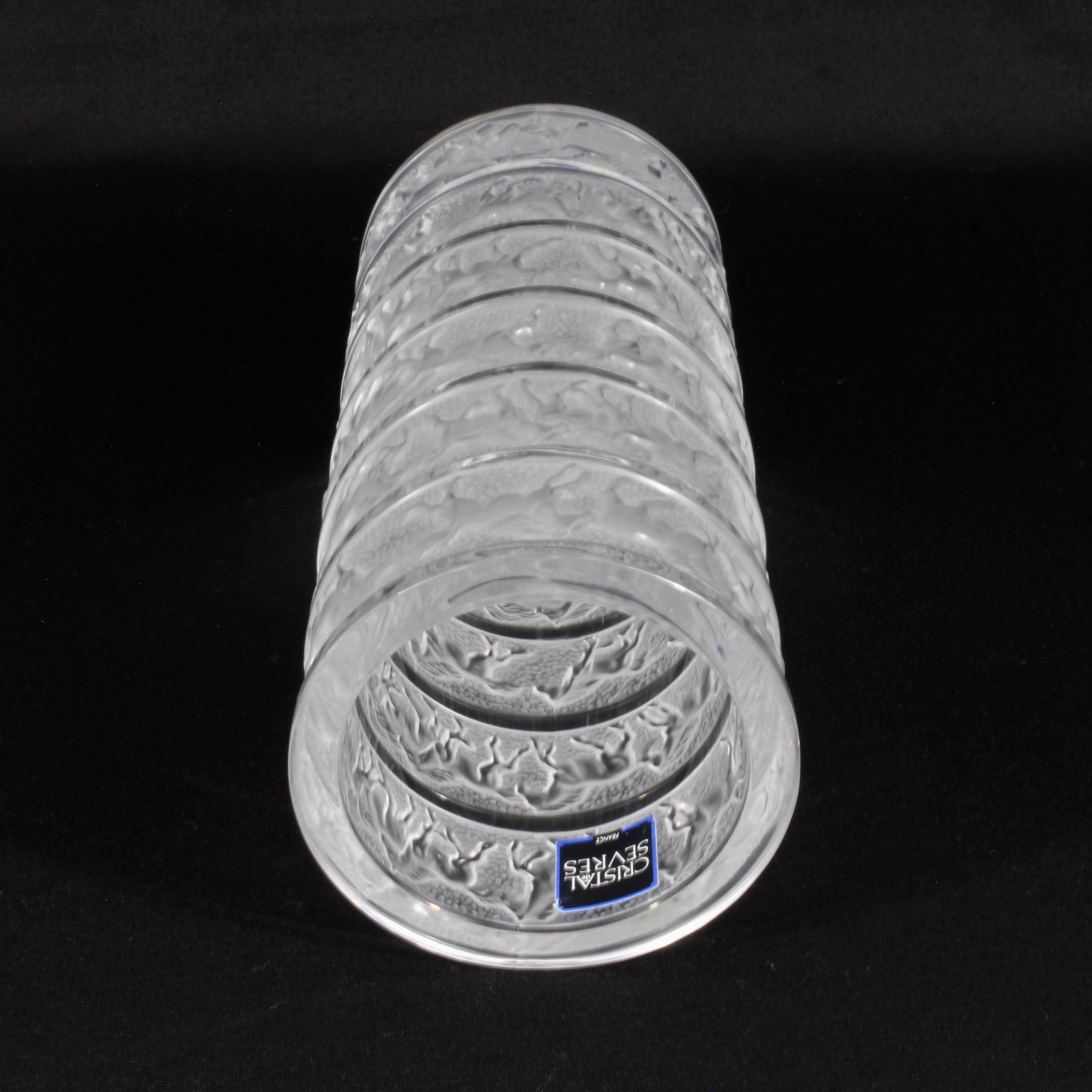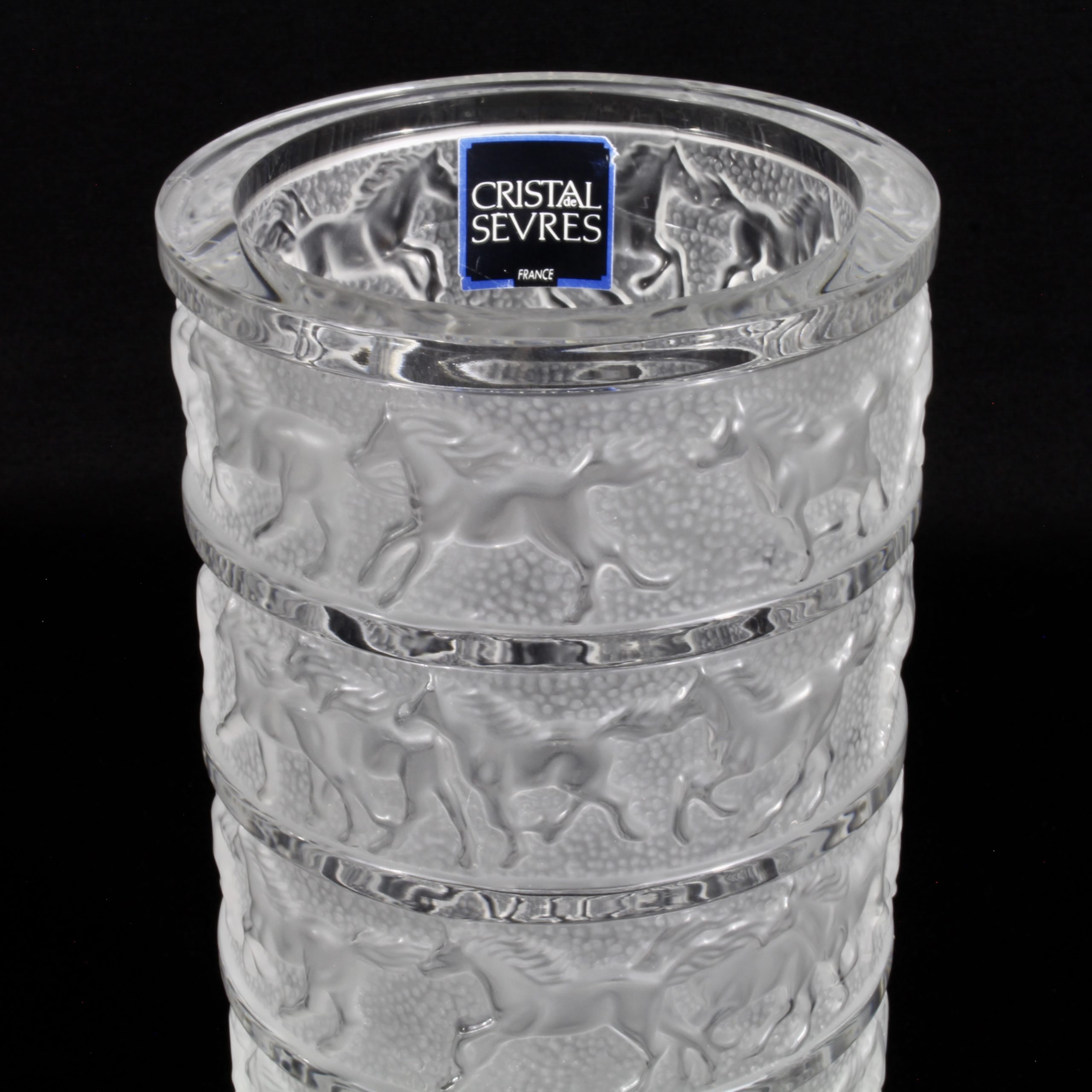 Signé du tampon rond Cristal de Sèvres et étiquette d’origine Cristal de Sèvres France sous le vase.