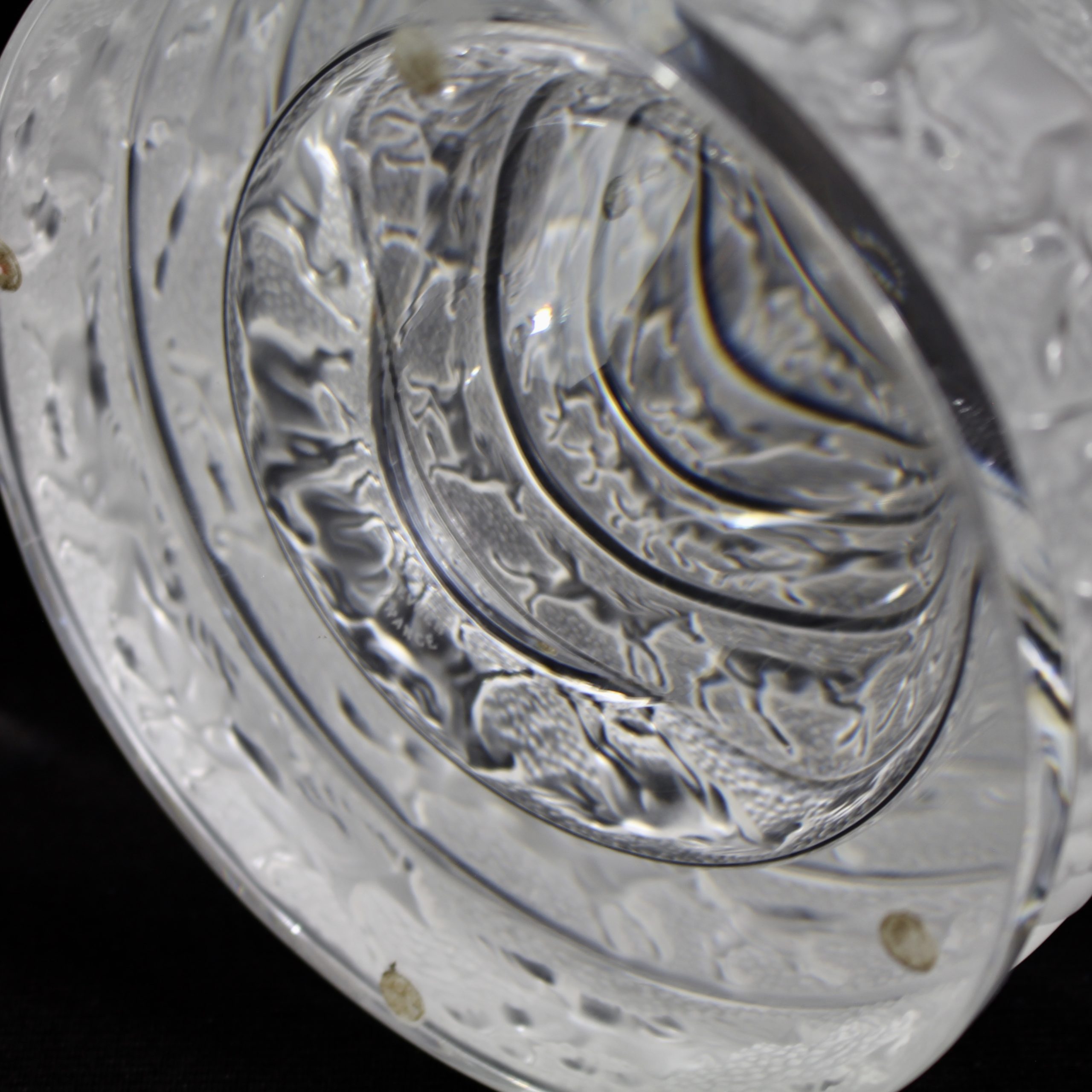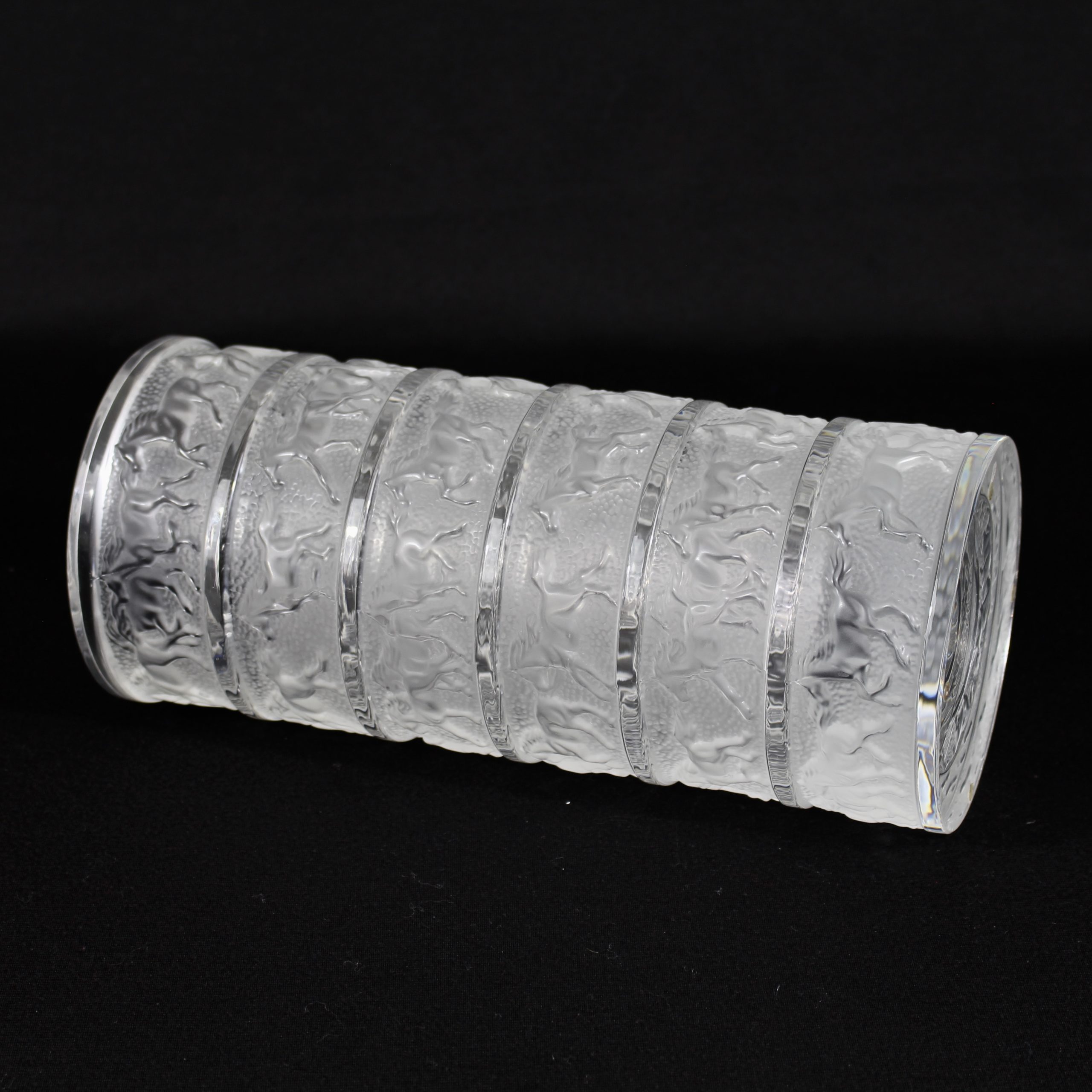 Six frises de chevaux au galop forment un très beau décor tournant, chaque frise étant séparée par une bande de cristal translucide.