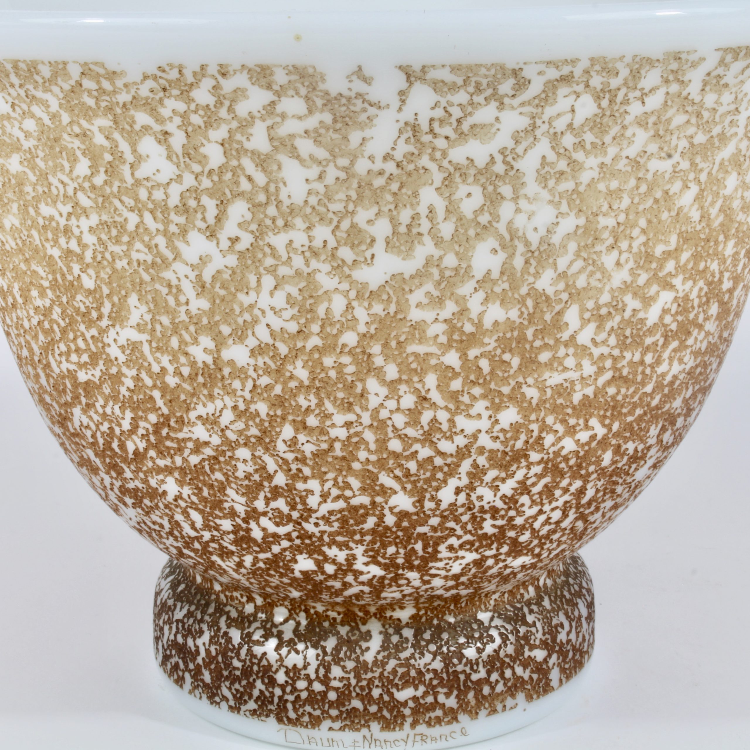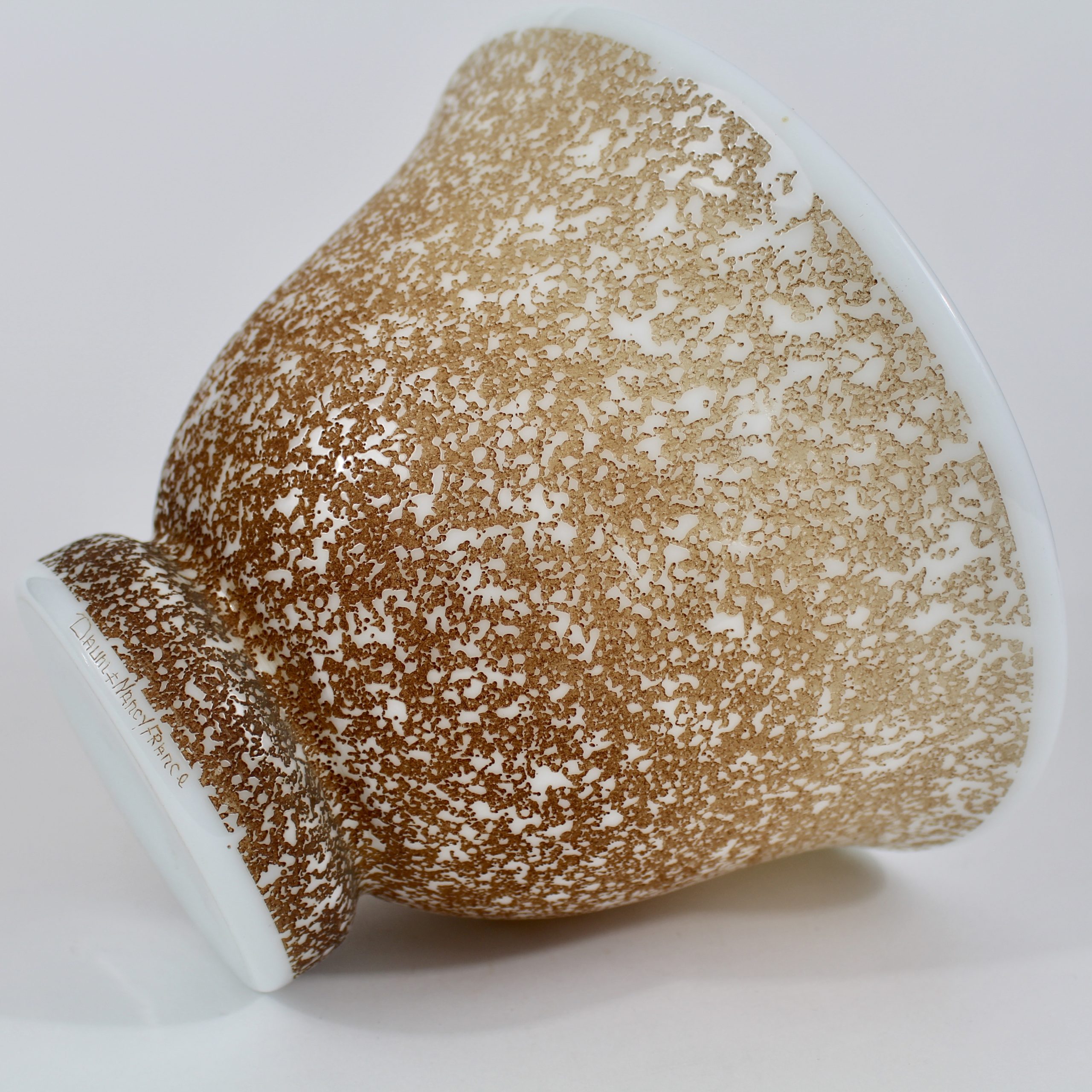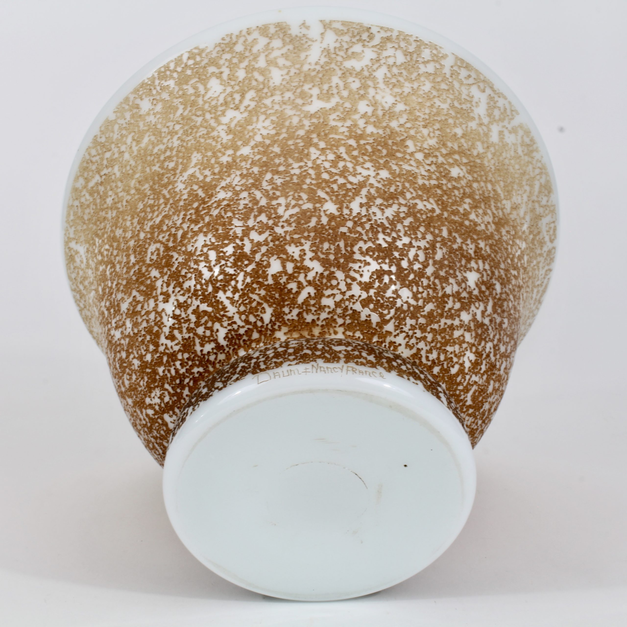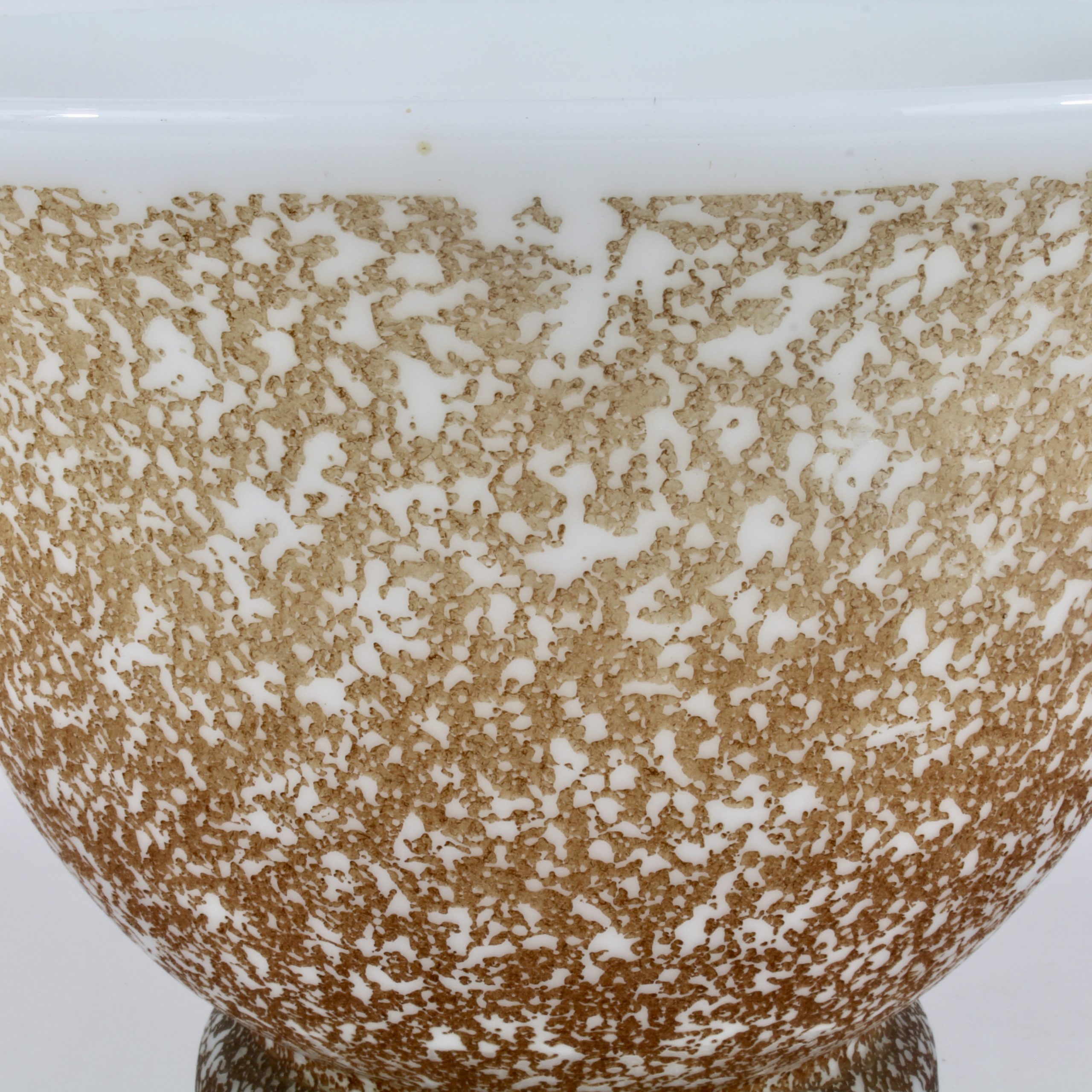 Modèle en verre blanc laiteux, de forme évasée, surface extérieure en verre granité à l’acide couleur caramel.