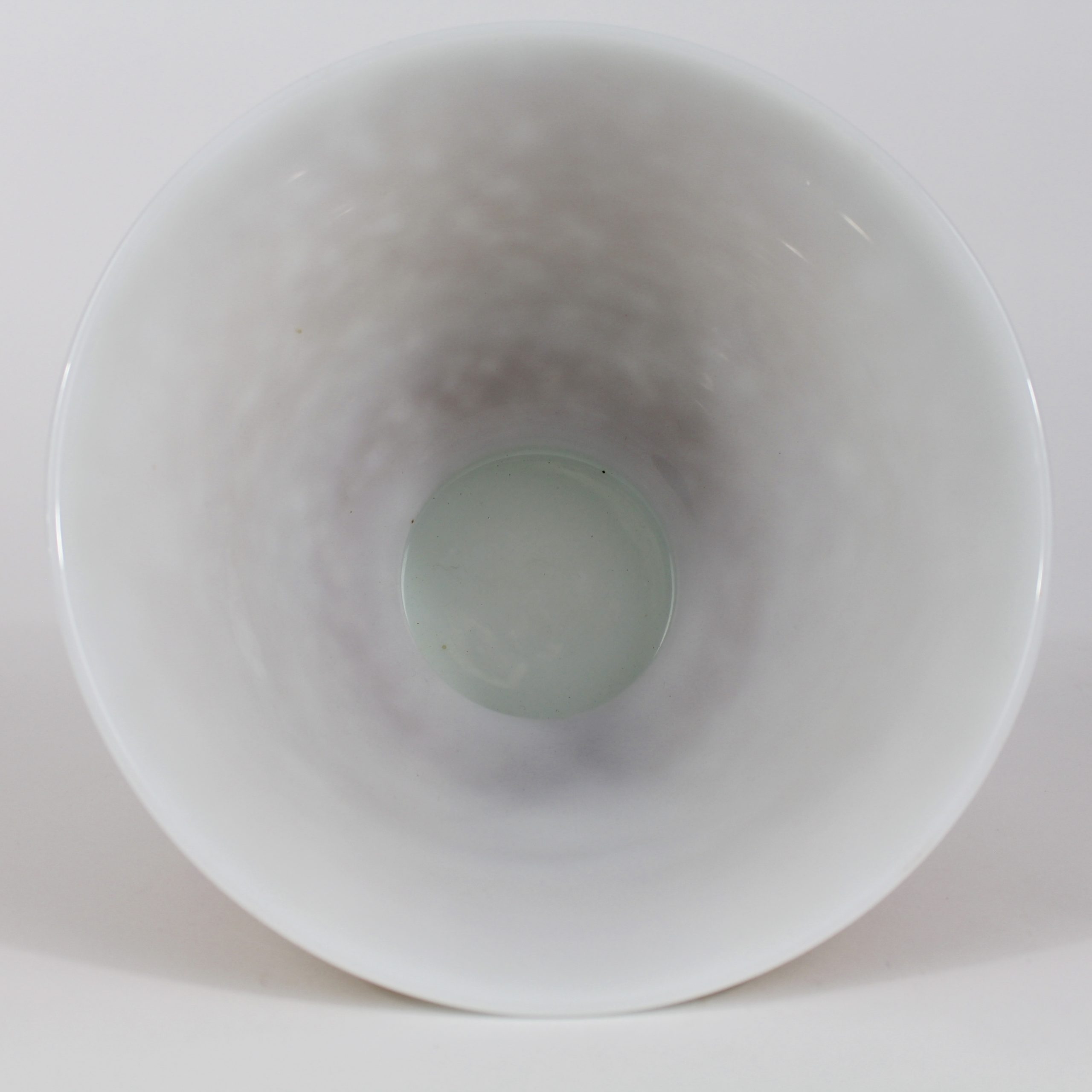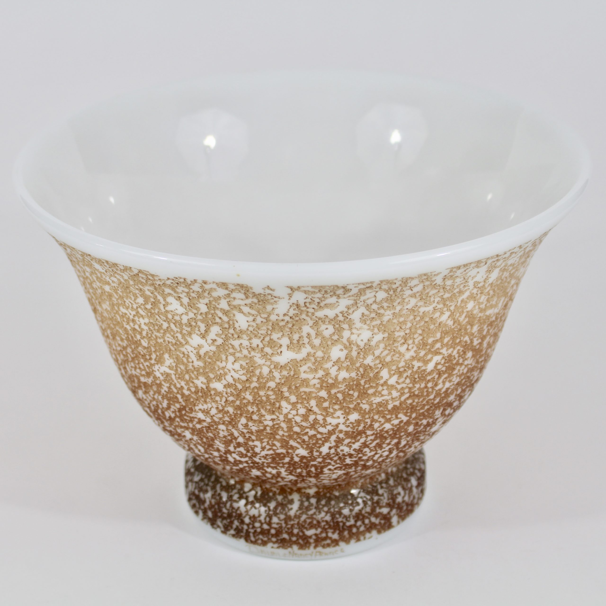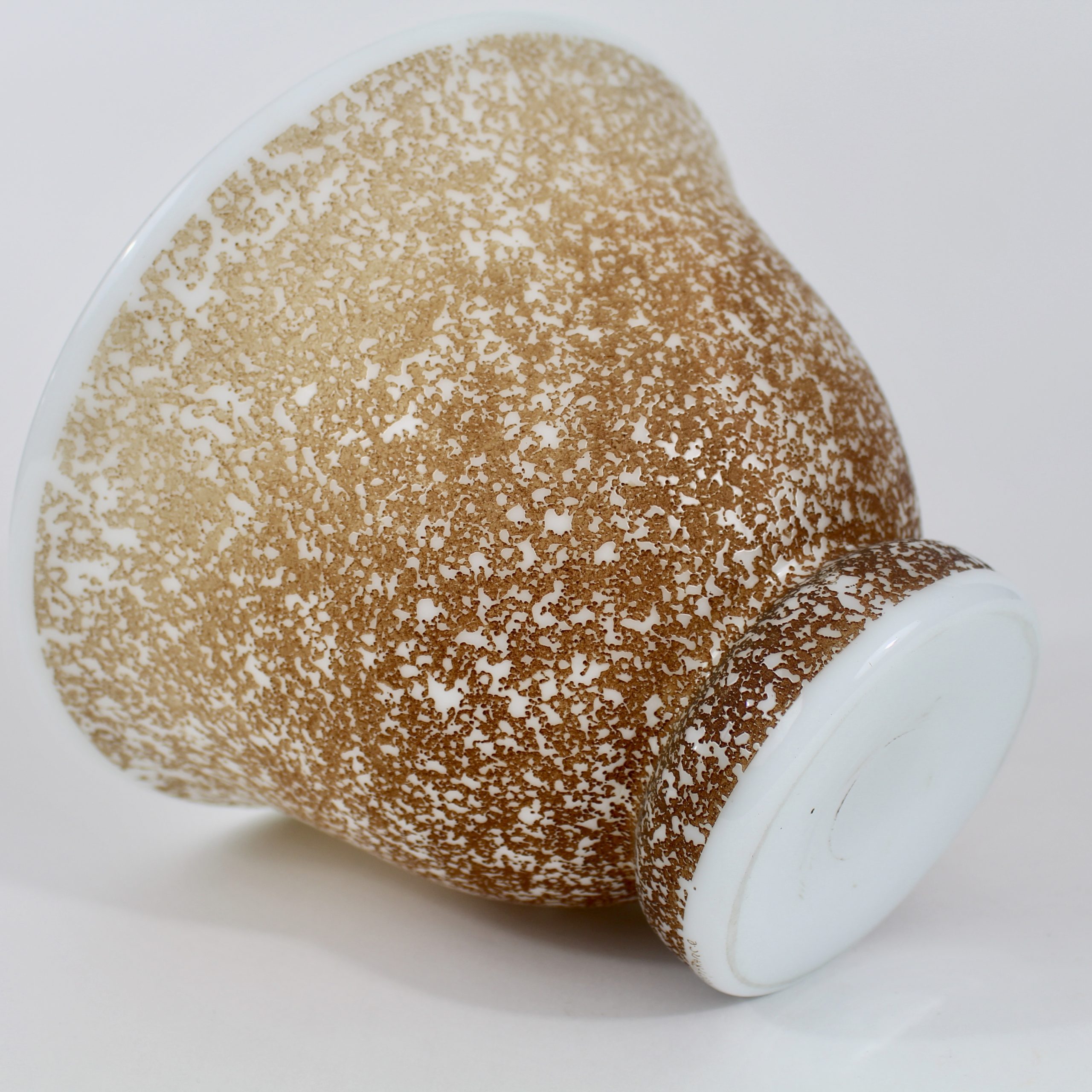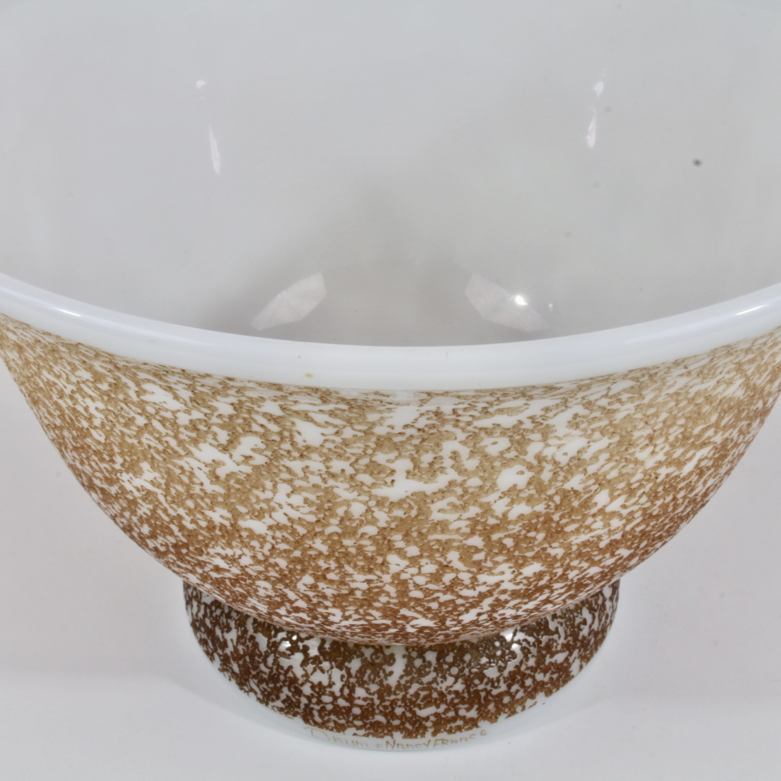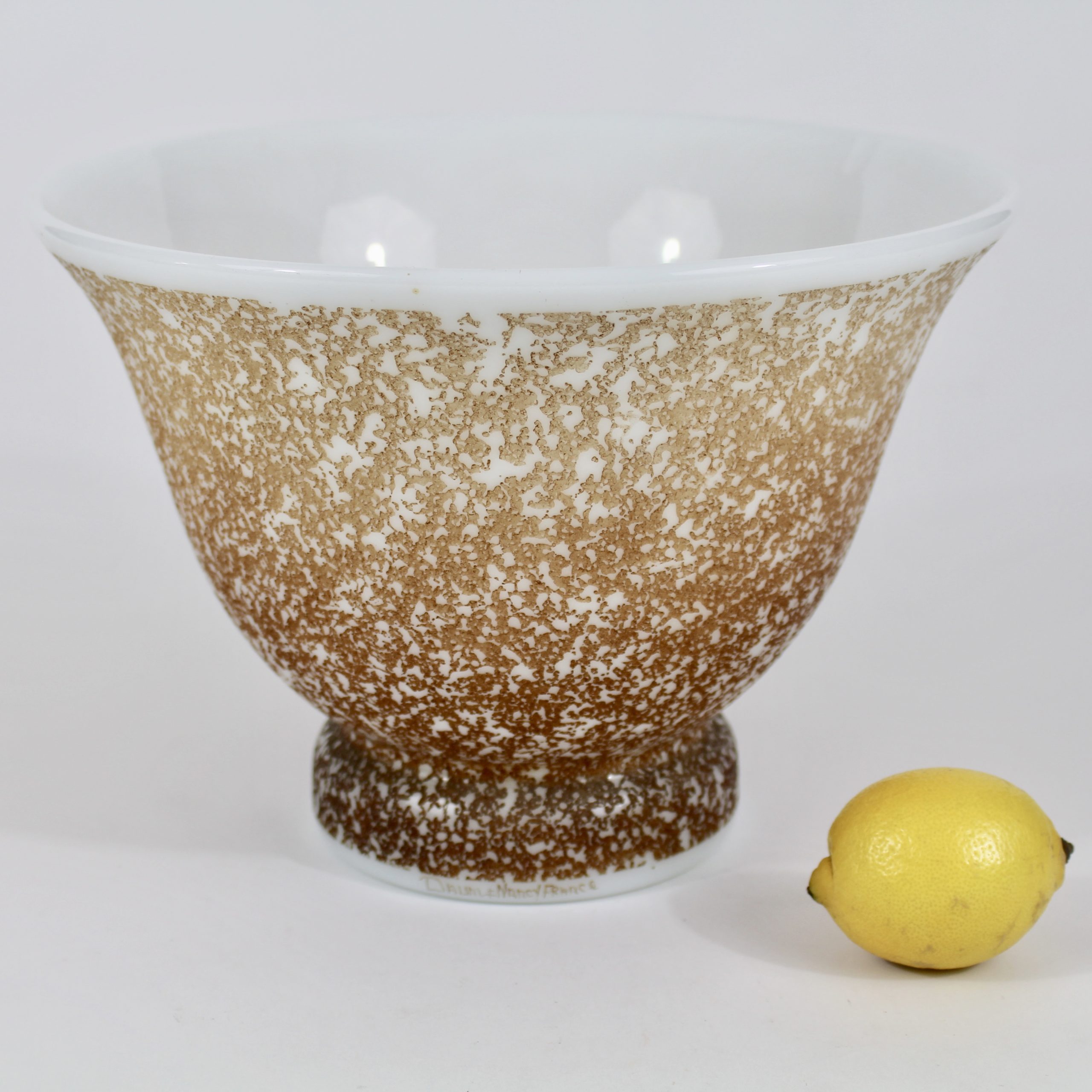 Modèle en verre blanc laiteux, de forme évasée, surface extérieure en verre granité à l’acide couleur caramel.