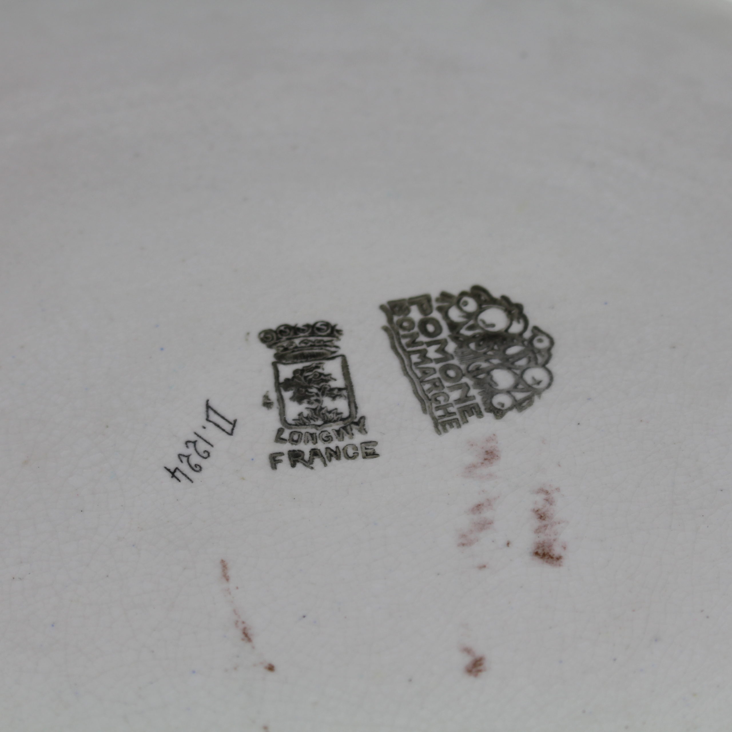 Cachet Longwy France et Pomone Le Bon Marché, numéro du décor D 1224 au dos du plat.