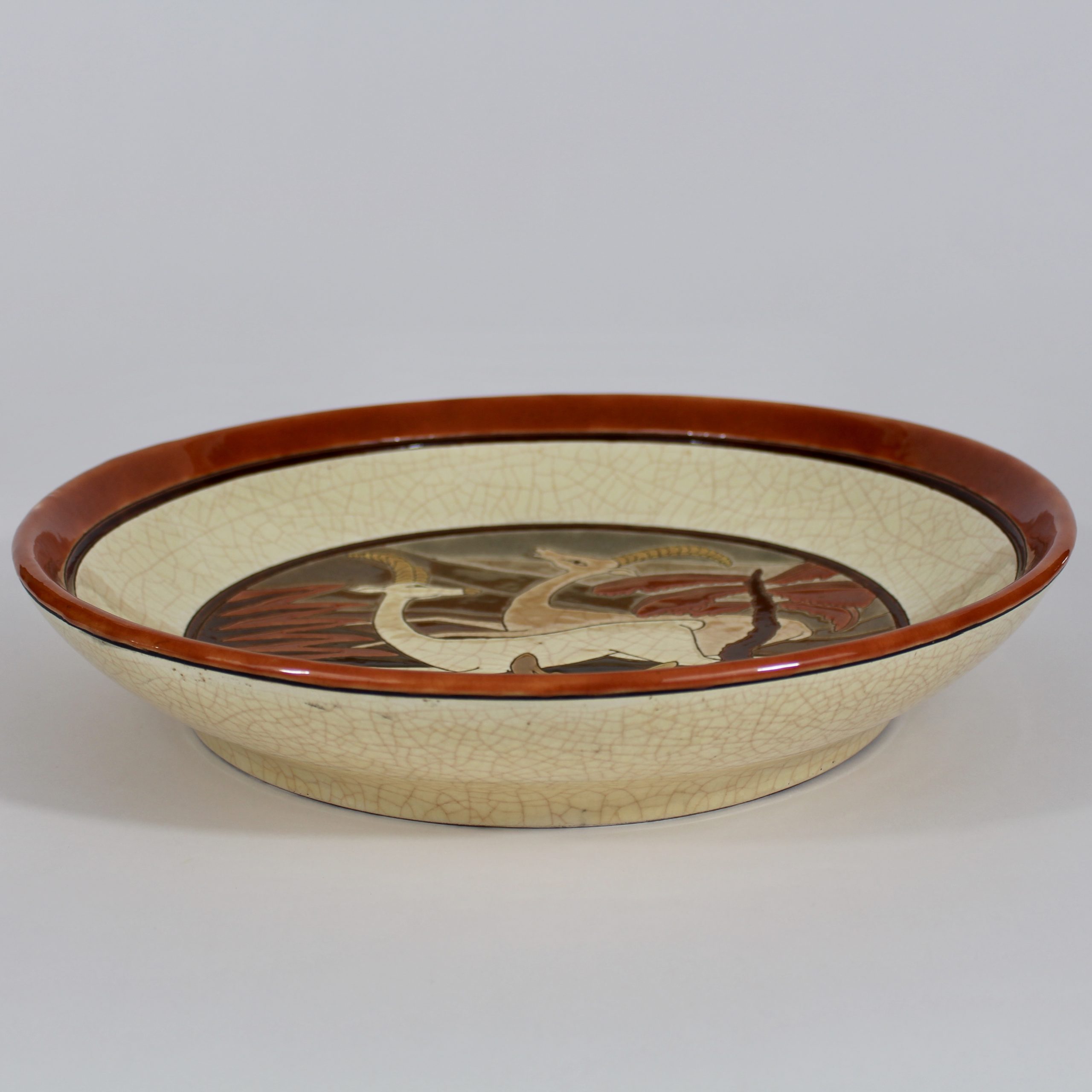 Spectaculaire et important plat creux par Longwy-Pomone vers 1930.