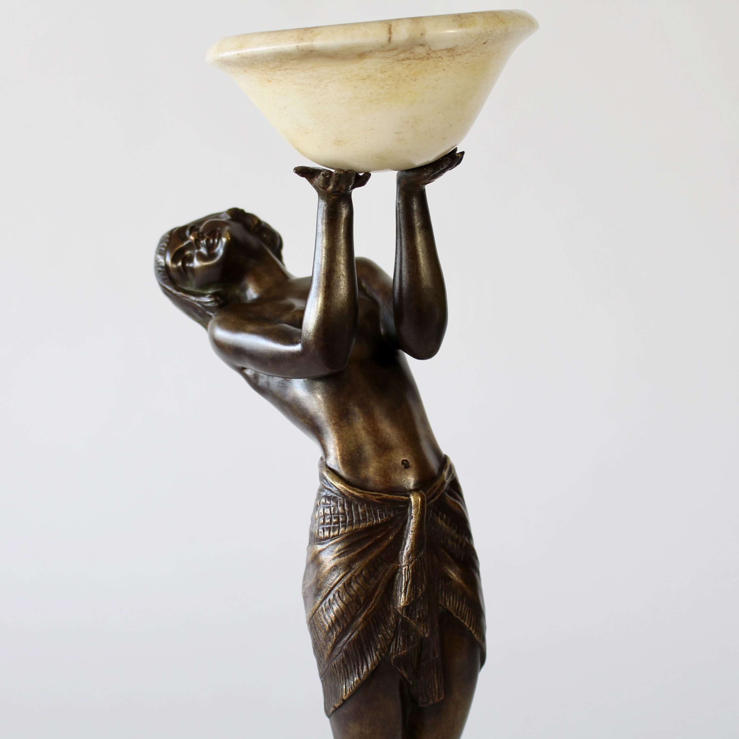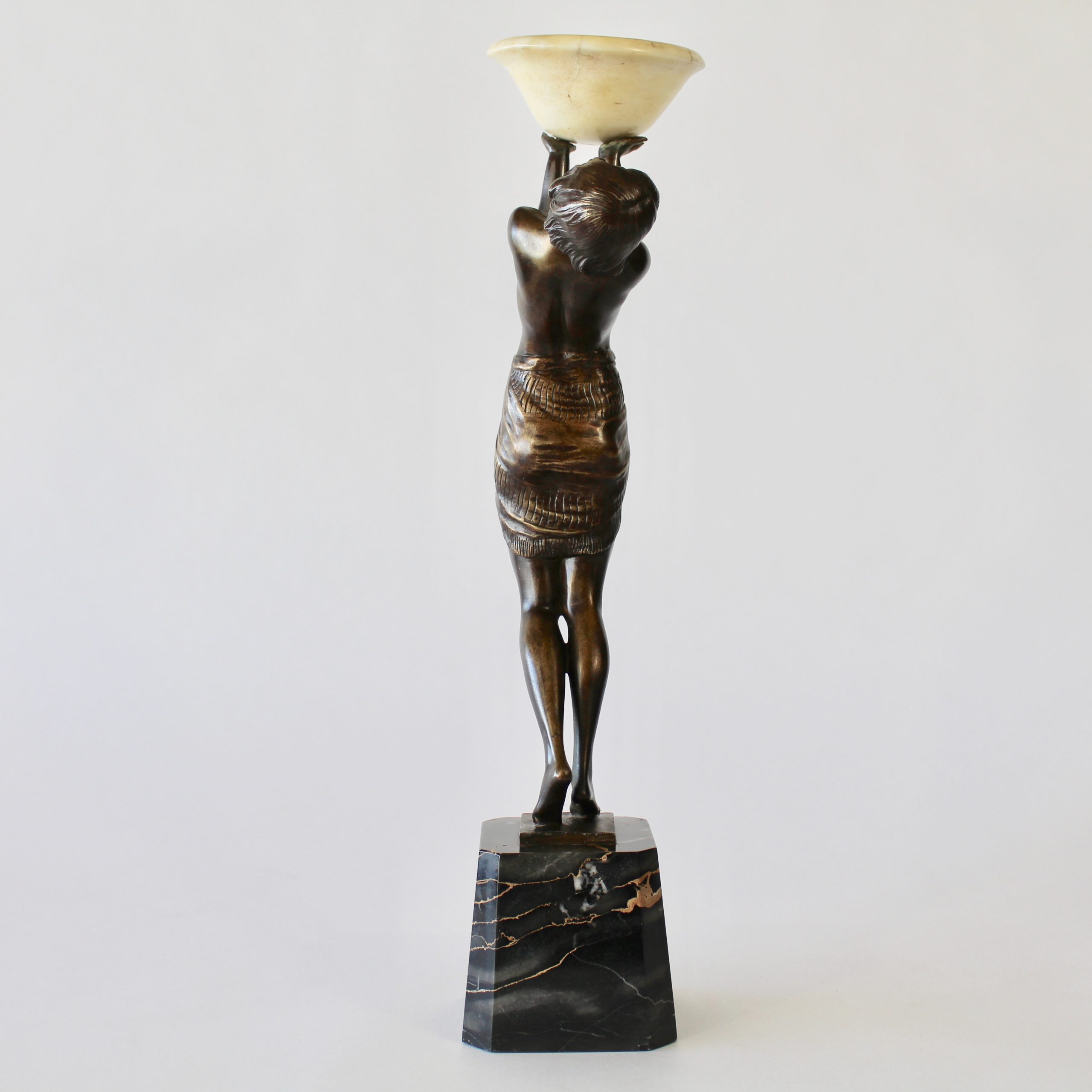 Patine bronze, coupe en albâtre, socle en marbre Portor.