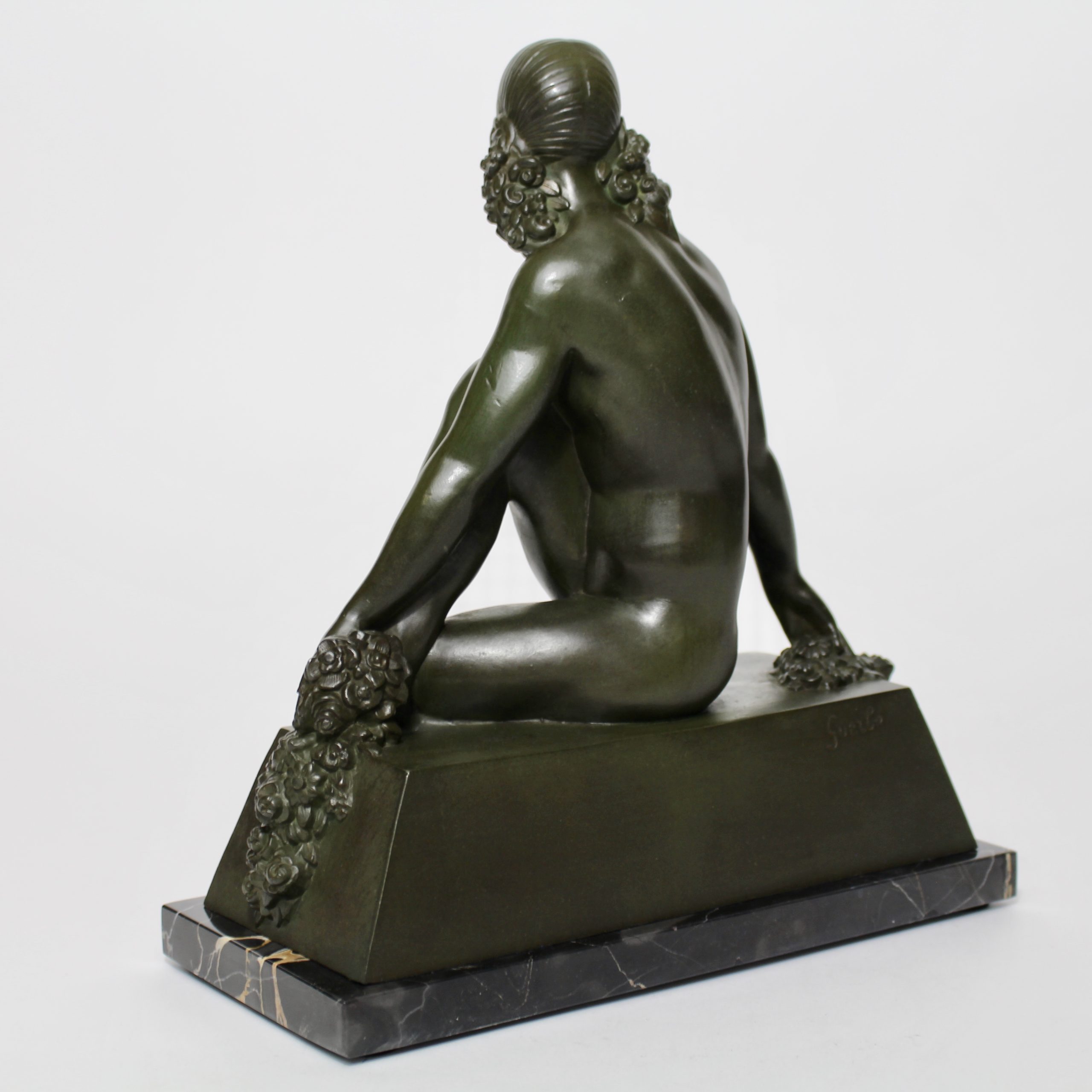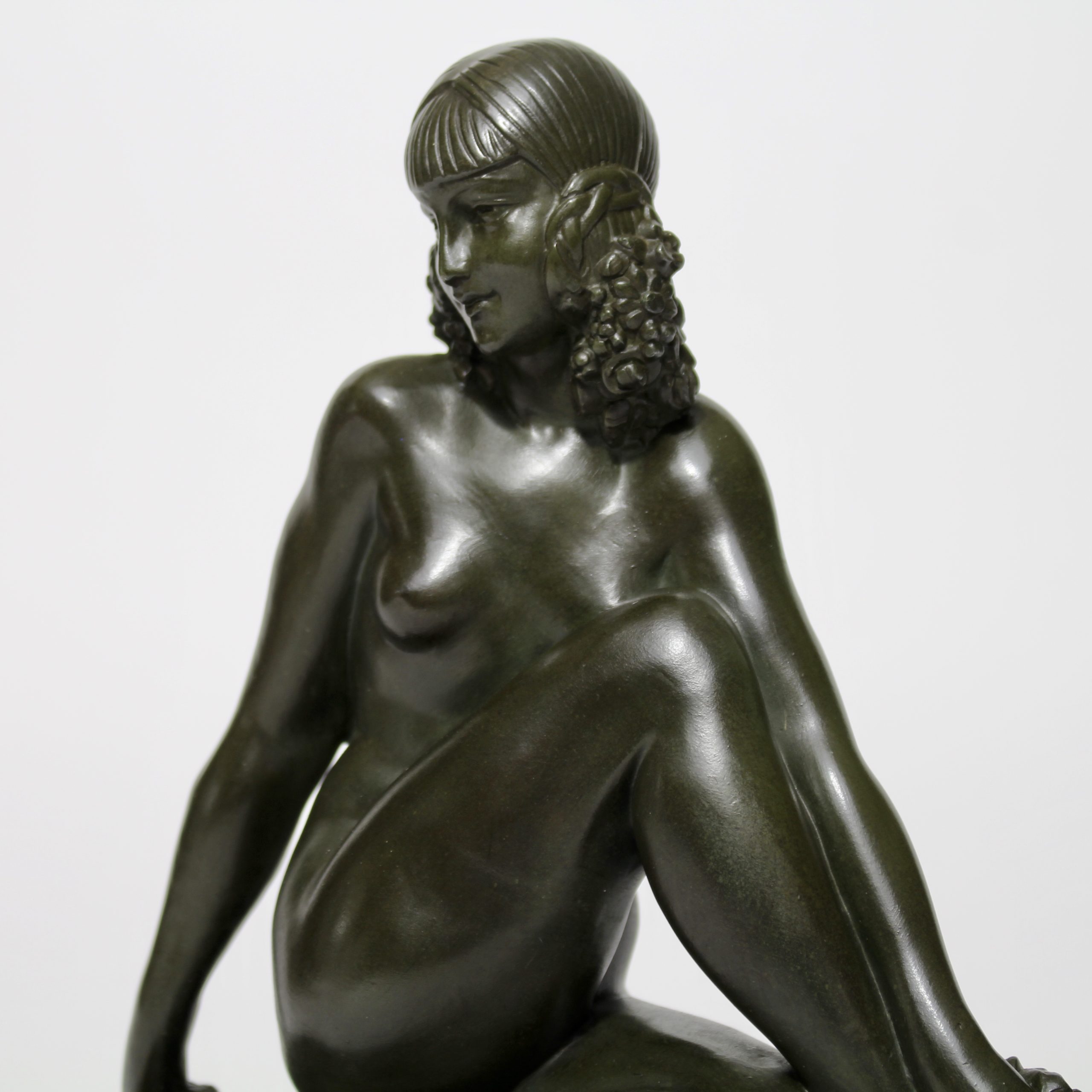Très élégante et rare sculpture en métal patiné par Raymonde Guerbe vers 1930.